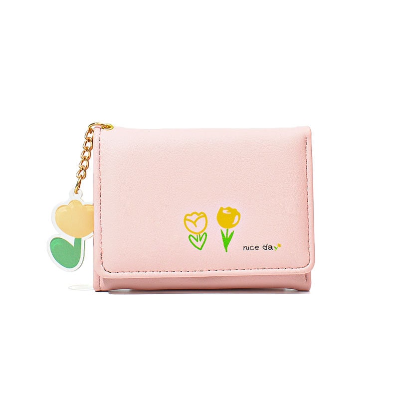 2025新調したい財布 短い三つ折りの純色シンプルなプリントがかわいい清新な学生の折りたたみ財布バッグ コンパクトミニ財布 ニ財布 レディース 小銭入れ二つ折り財布財布大容量