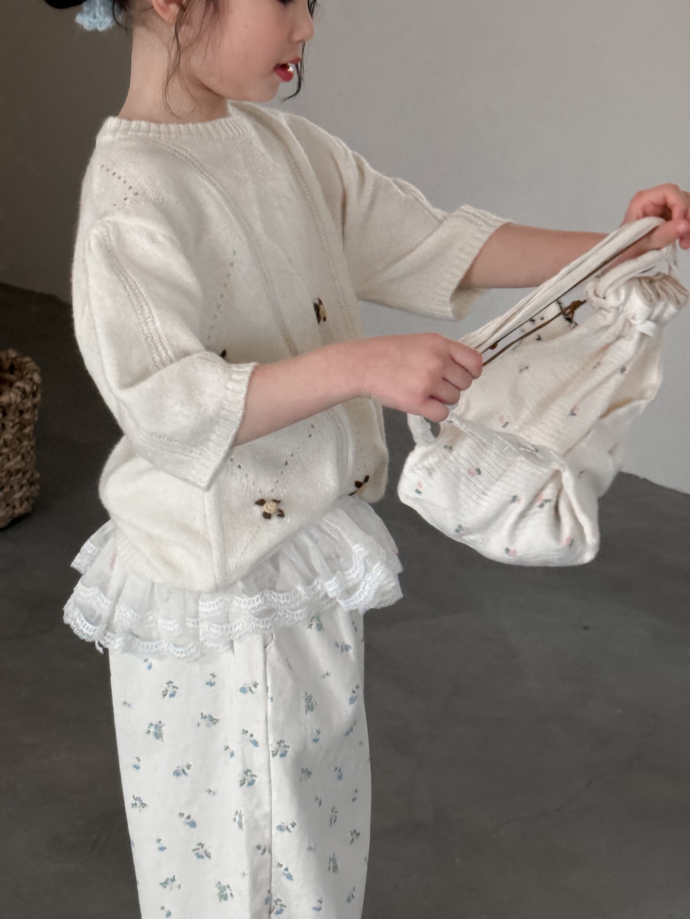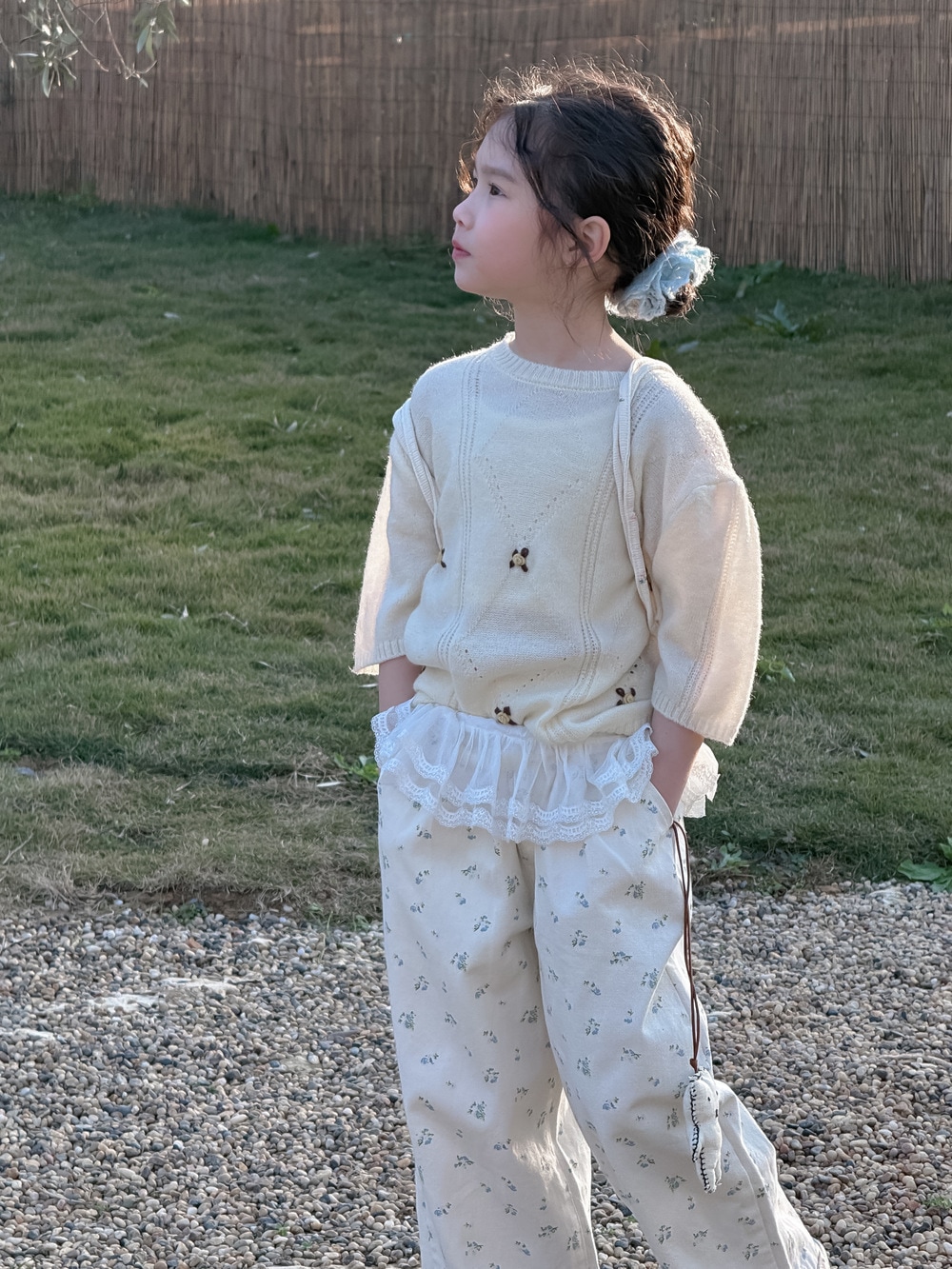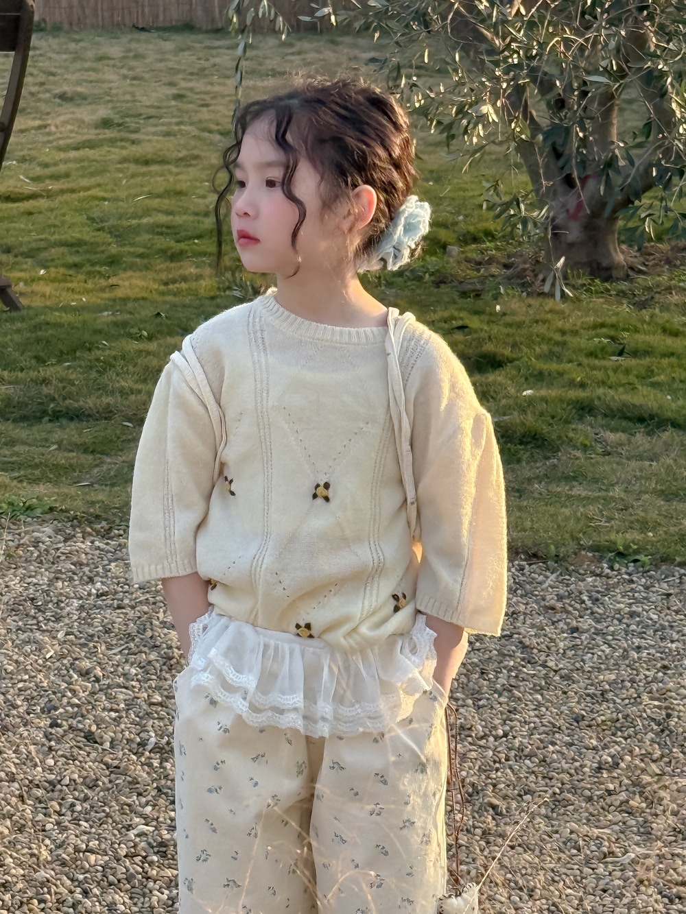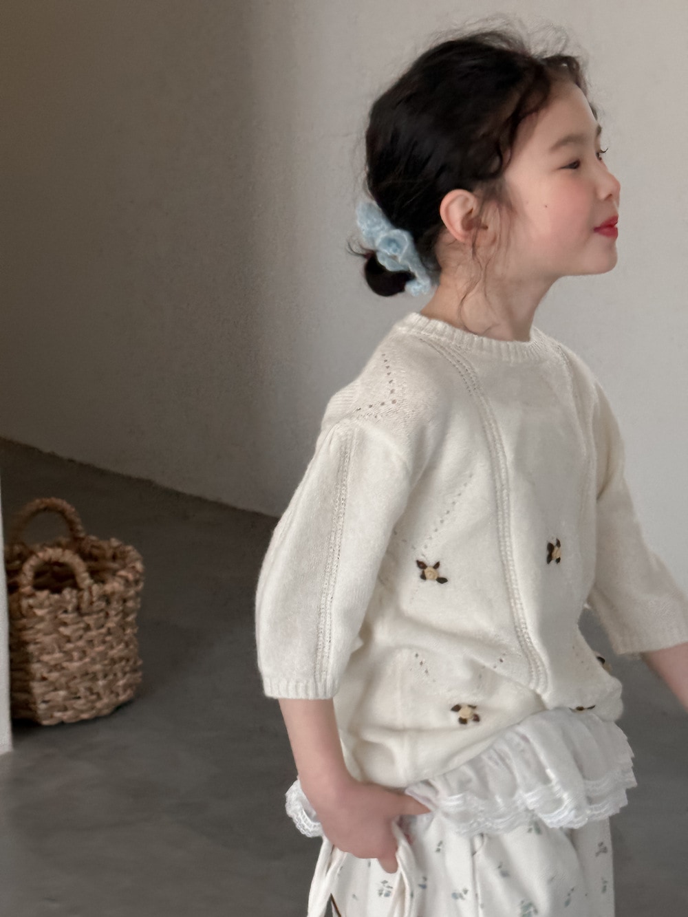 子供用セーター2025春モデル女の子用韓国版七分袖ニット上着子供丸首カバーゆったり毛糸コート Tシャツ ブラウス
