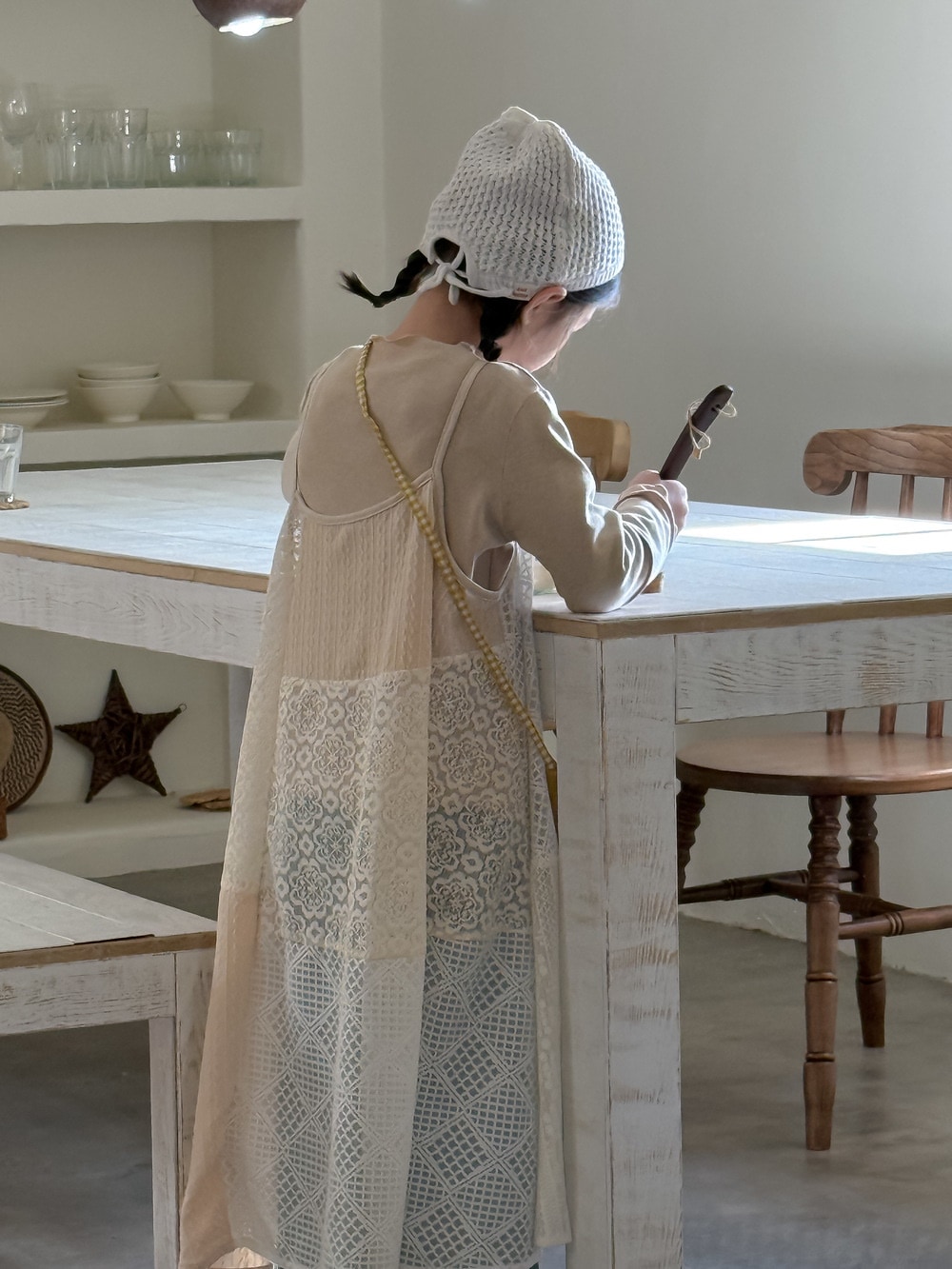 子供スカート2025春モデル女性の赤ちゃんの韓国版透かし継ぎ目スクリーンスカート子供の長い透視チョッキキャミソールスカート ワンピース ドレス