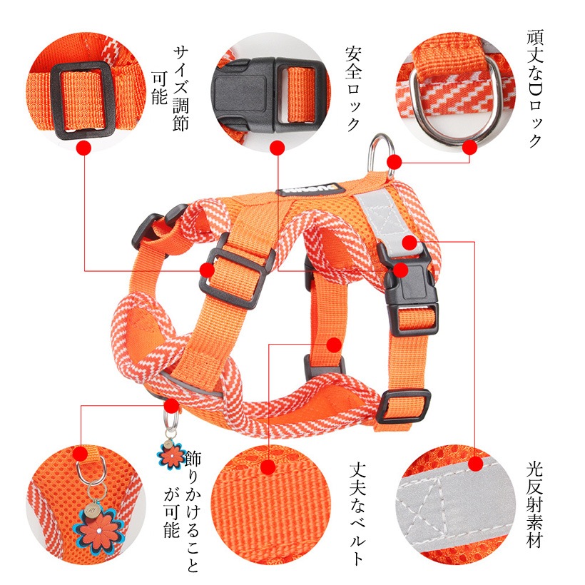 B4U ハーネス 小型犬 おしゃれ かわいい 脱げない ロック 胴輪 介護 ハンドル ペット 散歩 はーねす 胴輪 成犬用 愛犬 リード ペット用品 犬用品 猫用品 猫犬兼用
