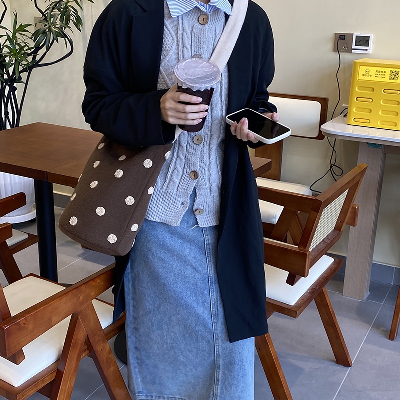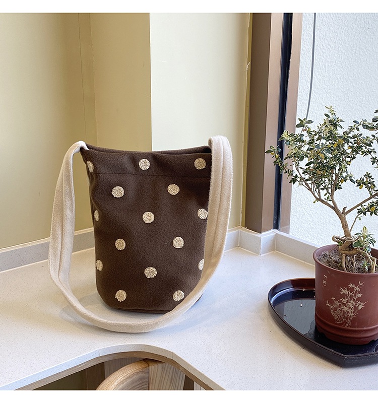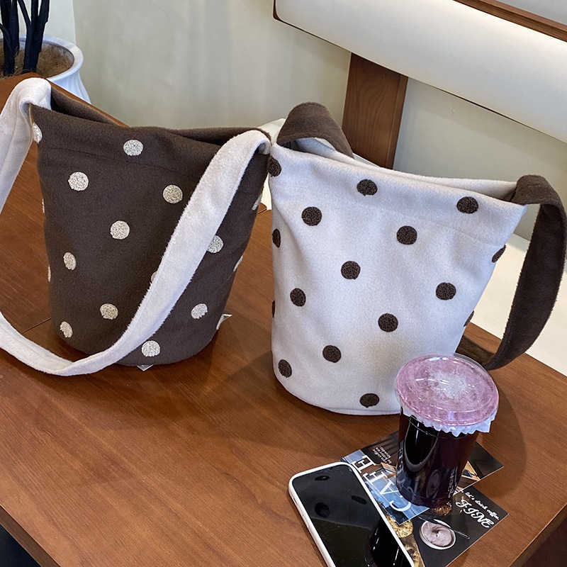 新型かわいい小衆波点バケツバッグ百合女性シングルバッグ大容量外出出勤斜め掛けスニーカーバッグ トートバッグ