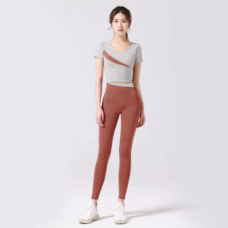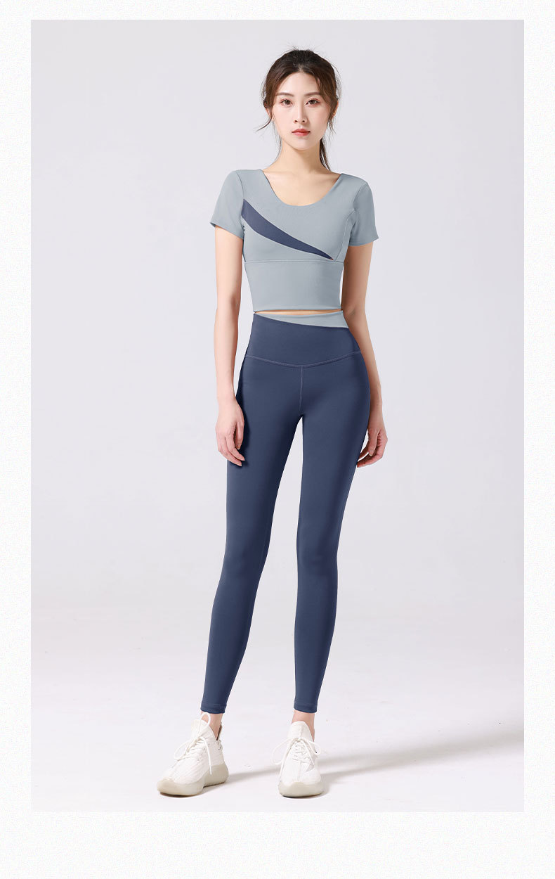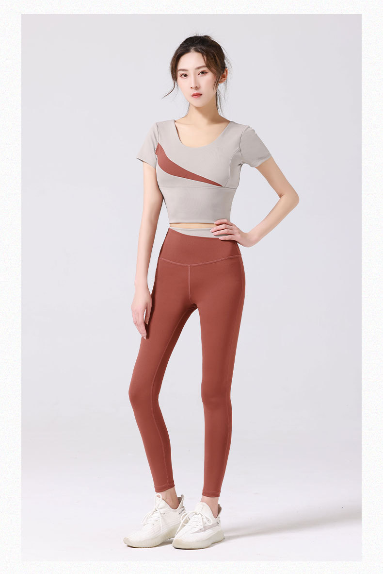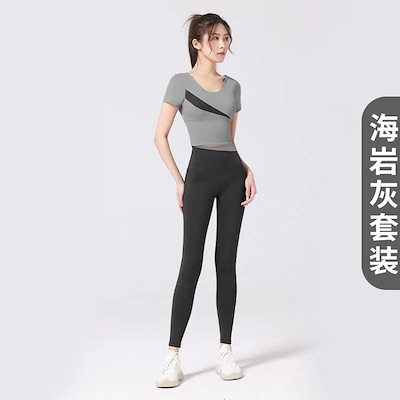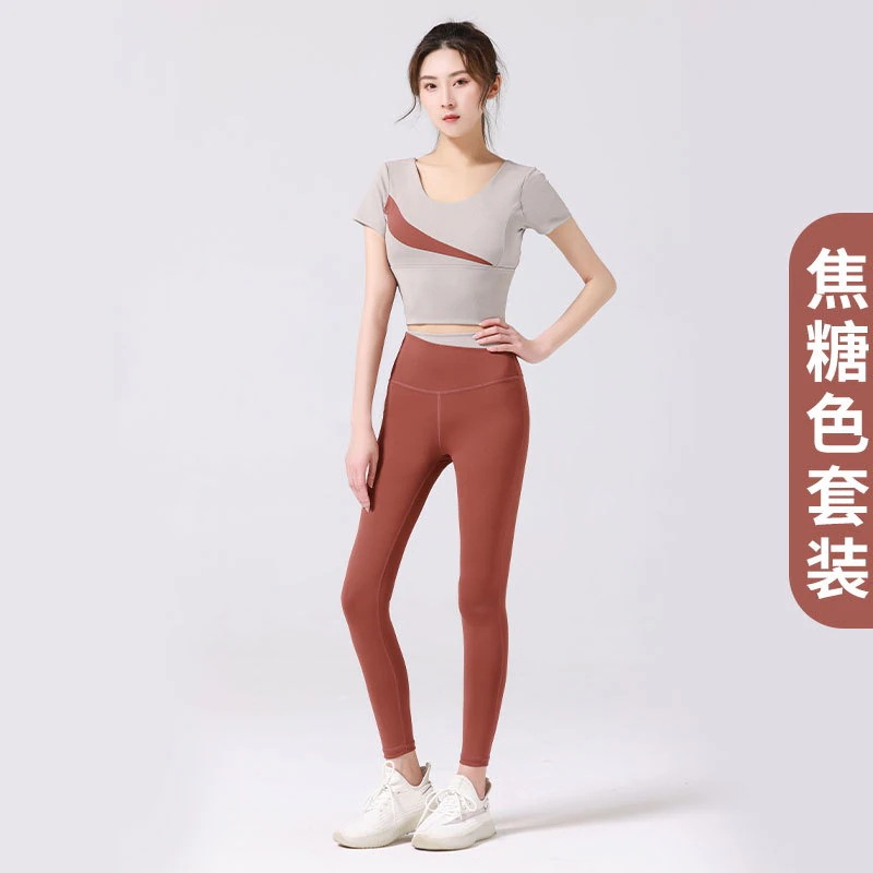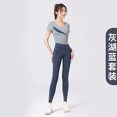 スポーツヨガスーツヨガウェアセット ブラ付きハイウエストヒップアップノンマーキングヌード 桃の斜めスペルフィットネスウェアセット トレーナー