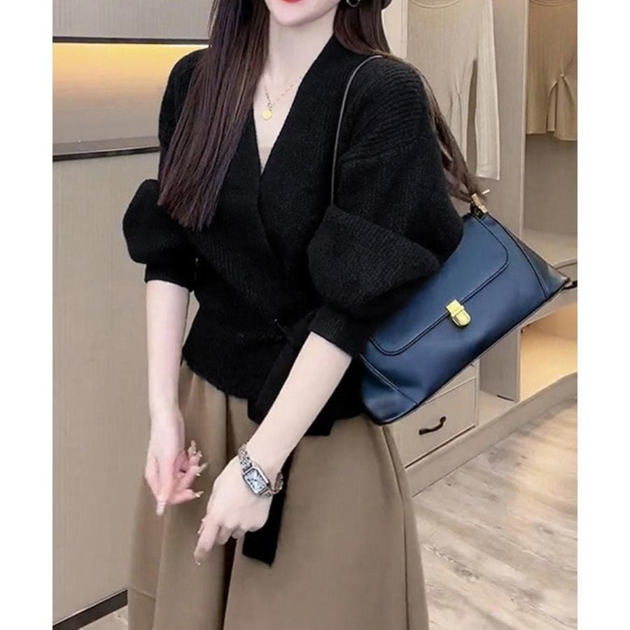 韓国ファッション 人気なリブニット ニットトップス カシュクールニット 韓国 レディース 百掛け 大きいサイズ 長袖 タートルネック ベーシックニット