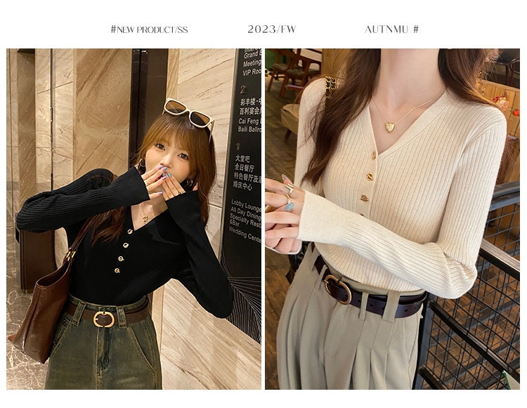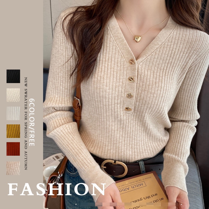 2025新作韓国ファッション春秋冬ニットTシャツ 6カラーニット レディース 無地 ニット プルオーバー リブニット トップス セーター レディース