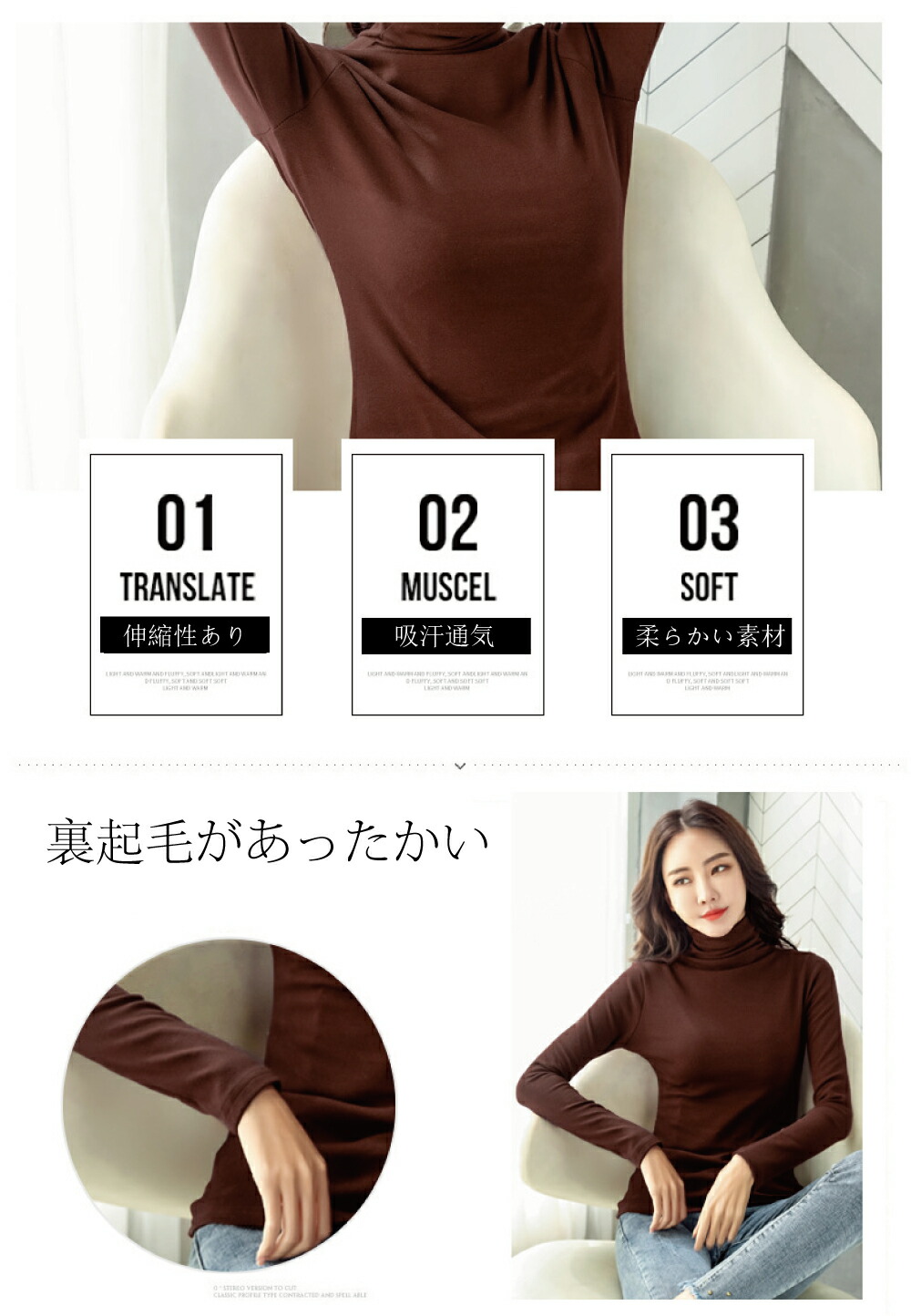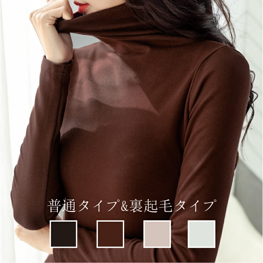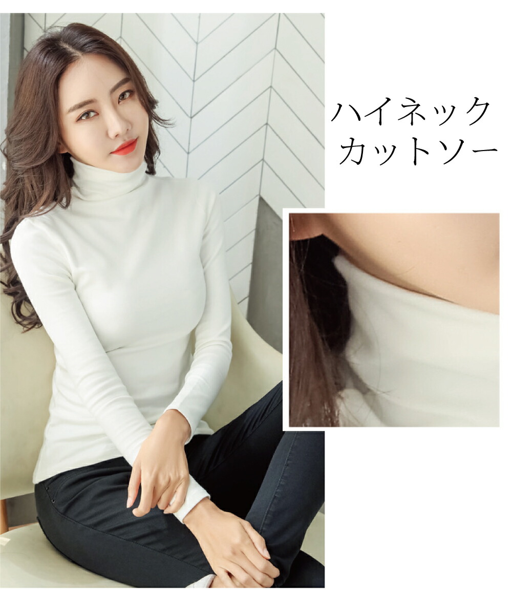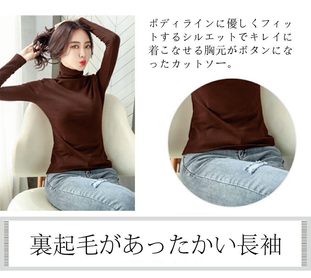 秋冬商品登場2タイプ ハイネックカットソートップス レディース タートルネック 防寒 長袖 裏起毛 タートルネックカットソー 秋冬 暖かい チュニック