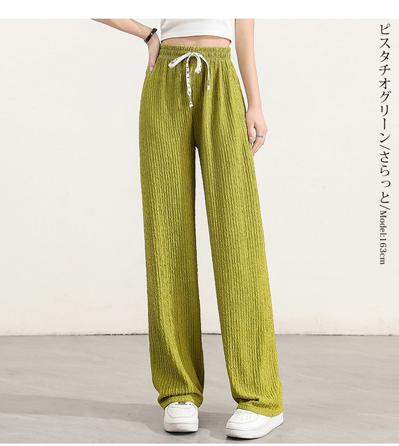 ワイドパンツ レディース 春夏 セミワイドパンツ セミワイド ズボン ジャガードパンツ 長ズボン ロング丈 ワイド ゆったり ボトムス ウエストゴム カジュアル30%までに制限