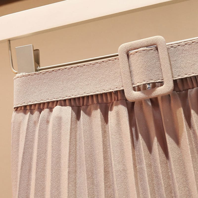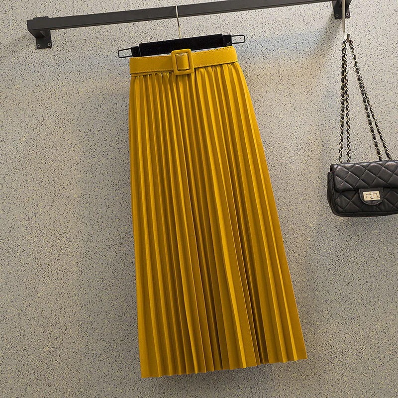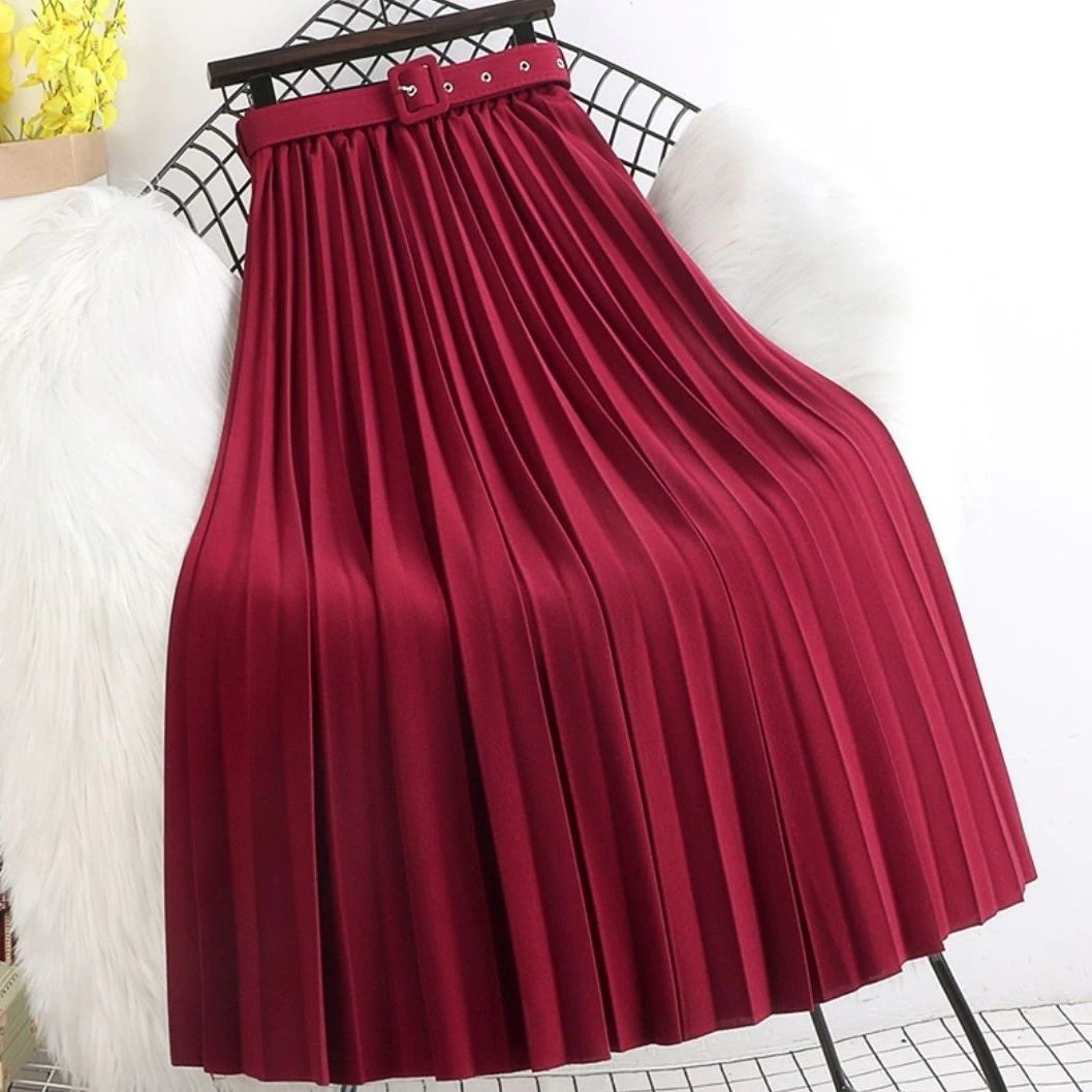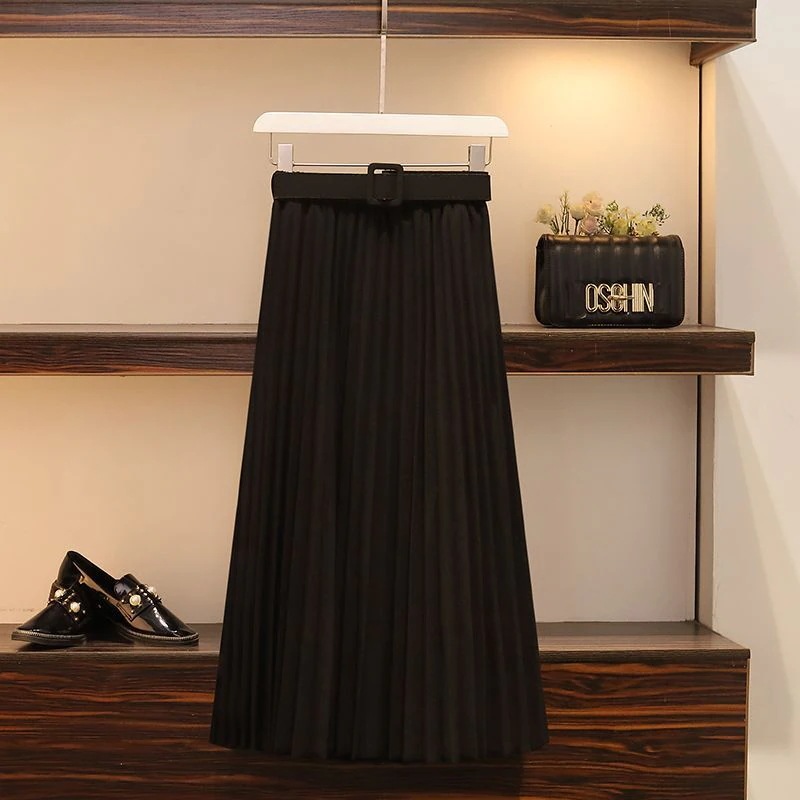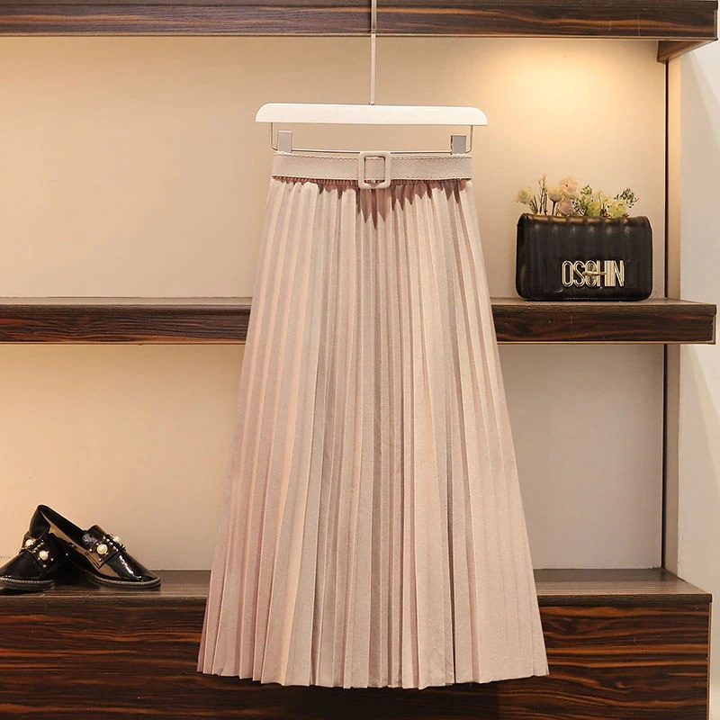 新色追加 選べる16色2024春秋夏の新作韓国版ミディアム丈半身スカート女純色プリーツスカートベルトを送って肉を隠す