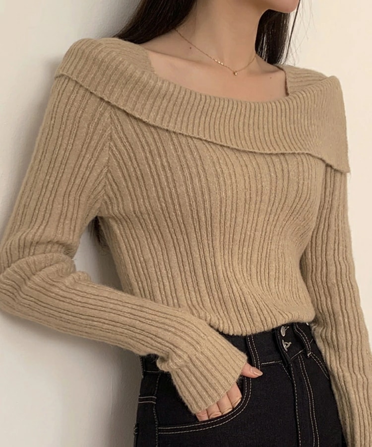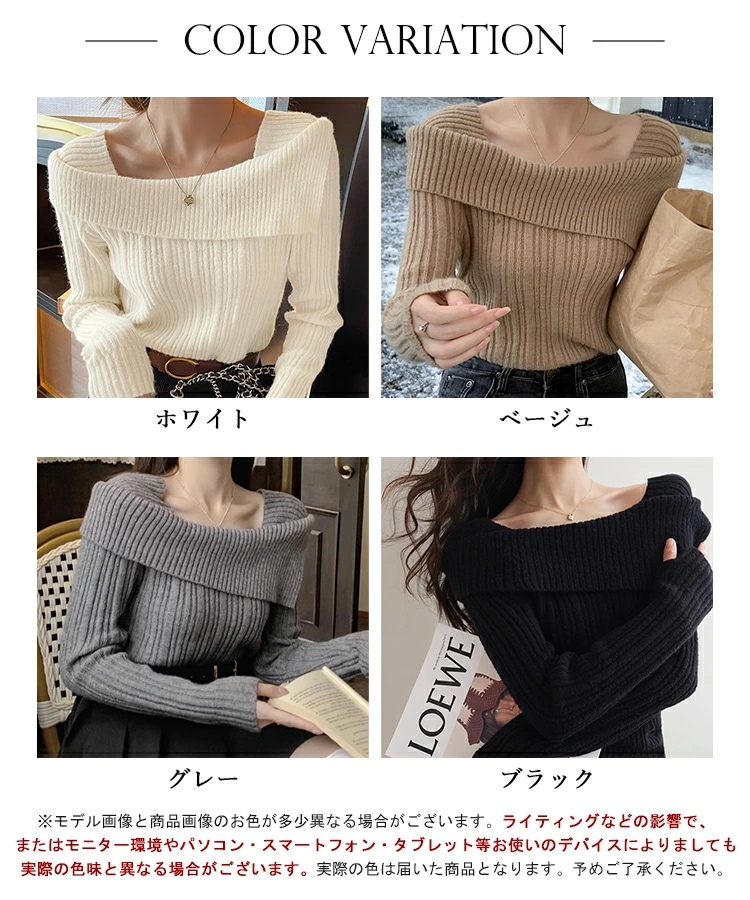 オフショルリブニット レディース トップス ニット 長袖 オフショルダー 鎖骨 デコルテ リブニット 秋 冬 プルオーバー セクシー きれいめ カジュアル オ