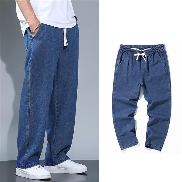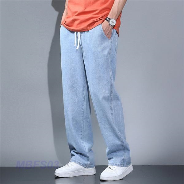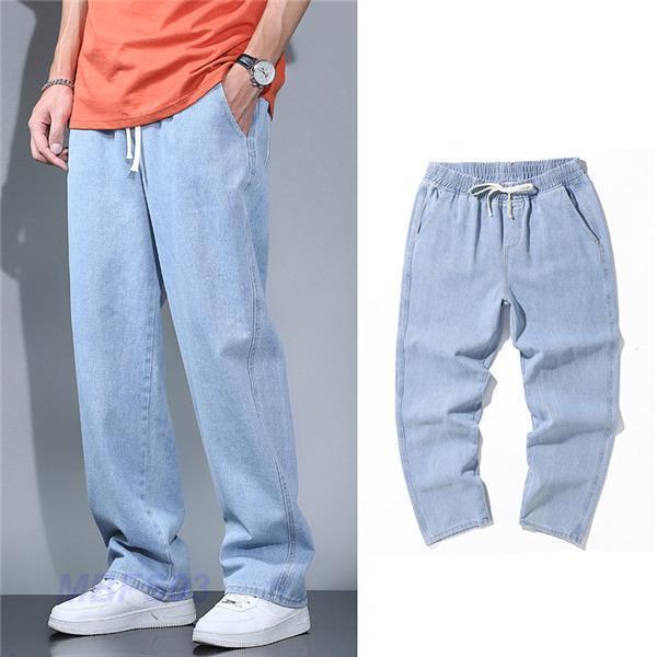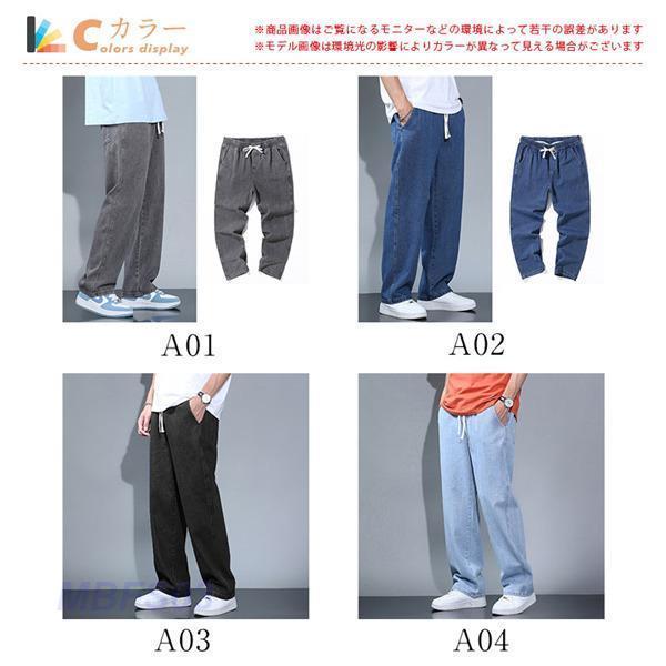 デニムパンツ メンズ ボトムス ジーンズ ジーパン 高級感 ジョガーパンツ ゆったり ワイドパンツ ロング丈 ウエストゴム 無地 オシャレ 夏物