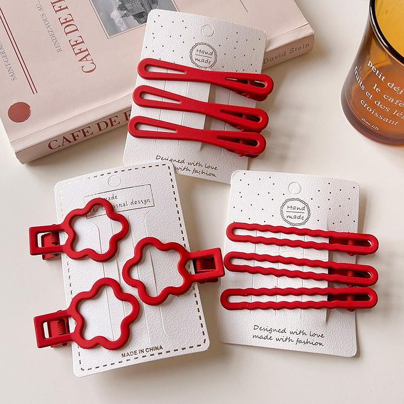 ファーウェイ クリスマスの赤いヘアピン女 前髪サイドにヘアピンを挟んだシンプルな 雰囲気 のヘアピ ヘアクリップ