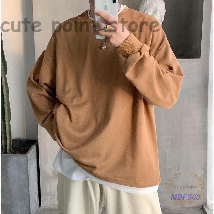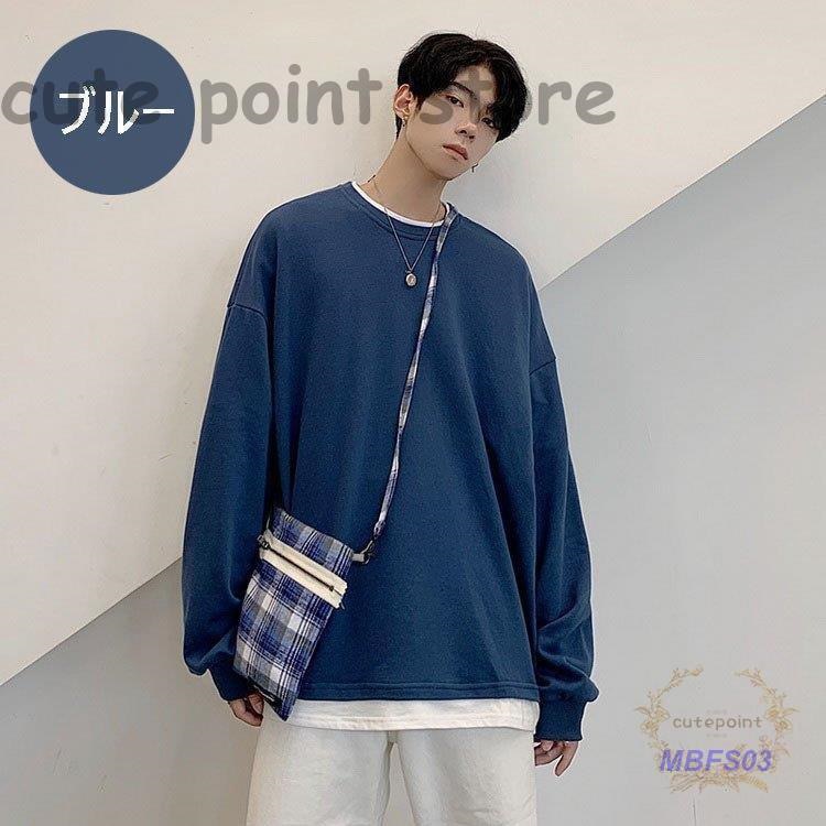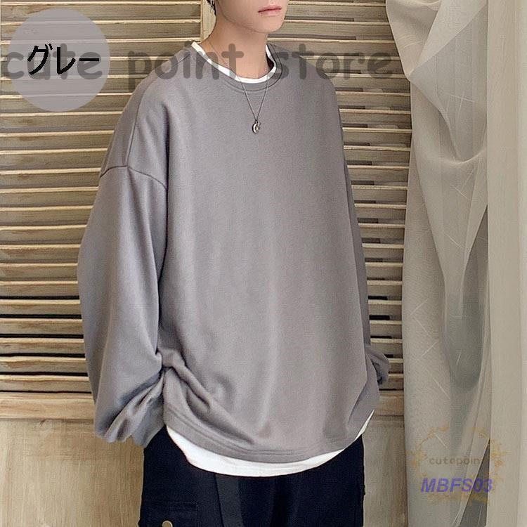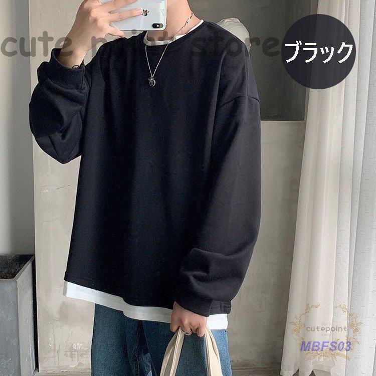 スウェットトレーナー メンズレディース 春秋 長袖Tシャツ 無地 ゆったり カップルプルオーバートレーナー フェイクレイヤード オシャレカジュアルトップス
