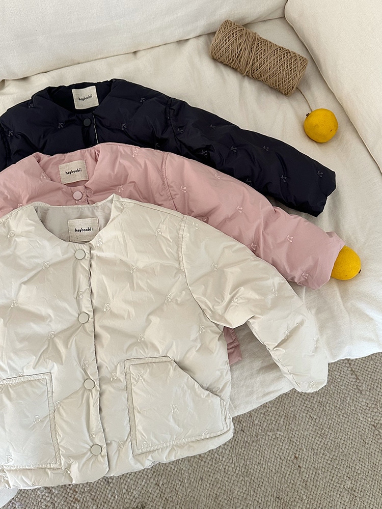 女の子さくらんぼたっぷり刺繍ダウンジャケット90絨毯新国標2024冬服新型子供刺繍丸首ダウンジャケット ジャンパー コート ジャケット