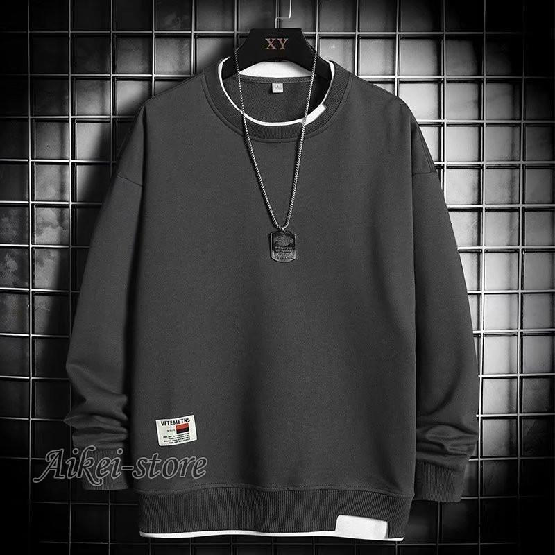 品質いいな新品 トレーナー メンズ 裏起毛 クルーネック プルオーバー フェイクレイヤード スウェット Tシャツ ゆったり 無地 厚手 スポーツ 春秋 冬 おしゃれ