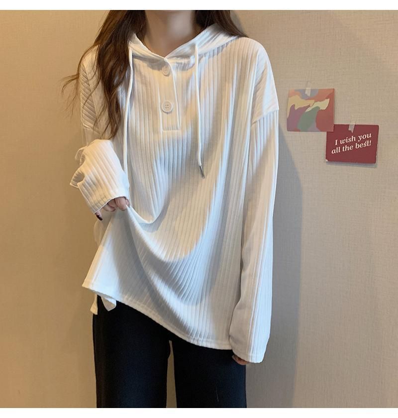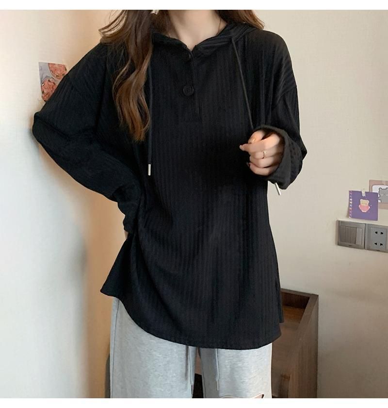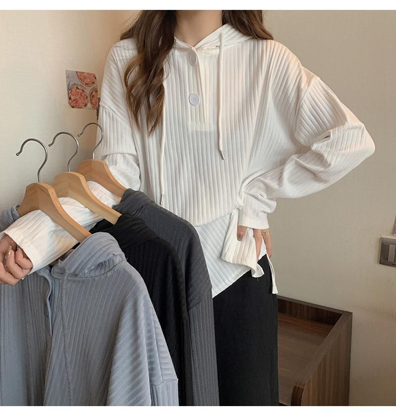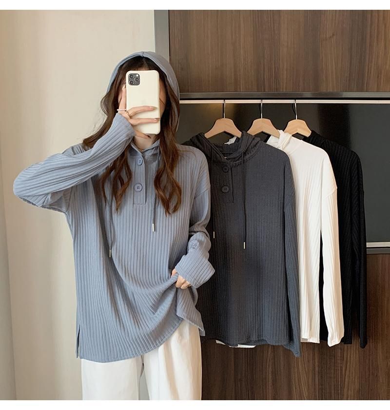 春秋 着痩せ ばくはつ 長袖ブラウス フード付き レディース ファッション Tシャツ カットソー