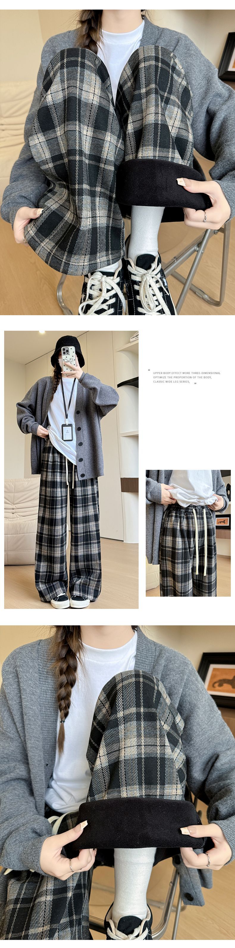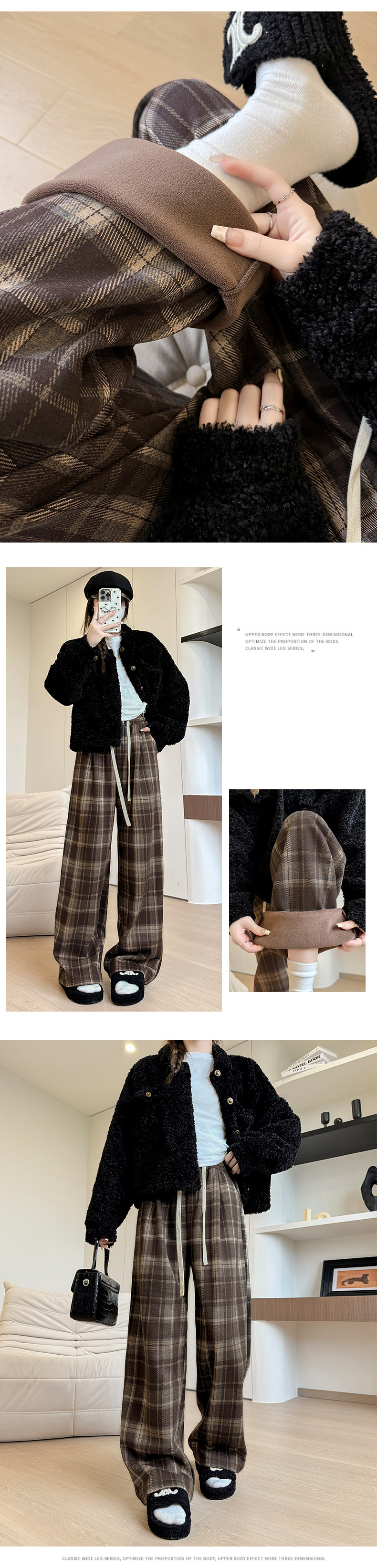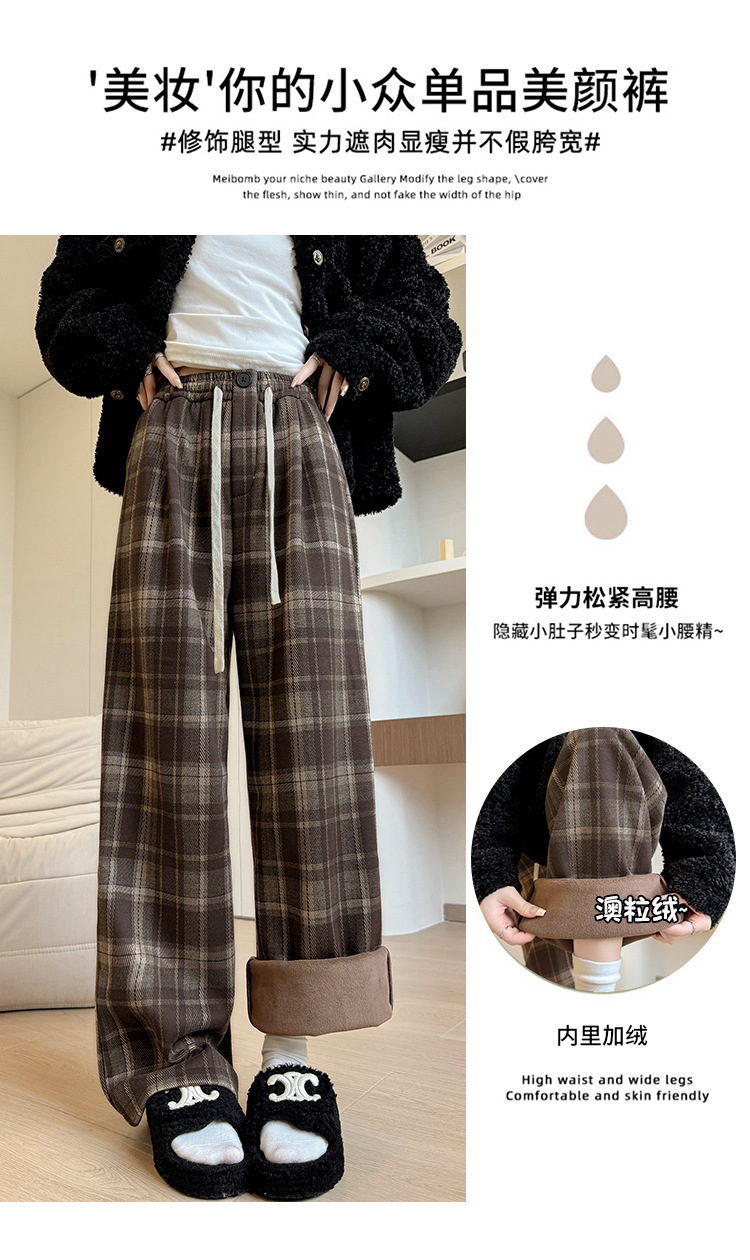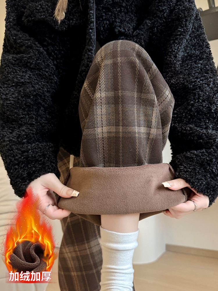 ストレートパンツ レディース ラシャ チェック ボア付き ハイウェスト パンツ 美脚 脚長 ストレート 体型カバー ボトムス ロング ボア 厚手 マキシ丈 ワイド ボト