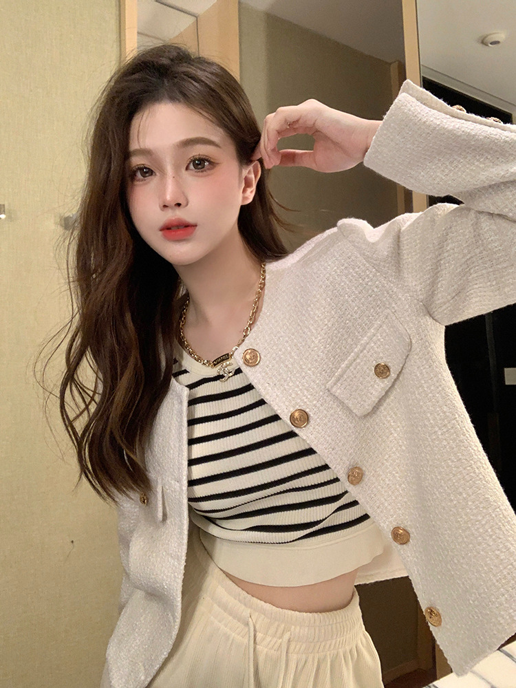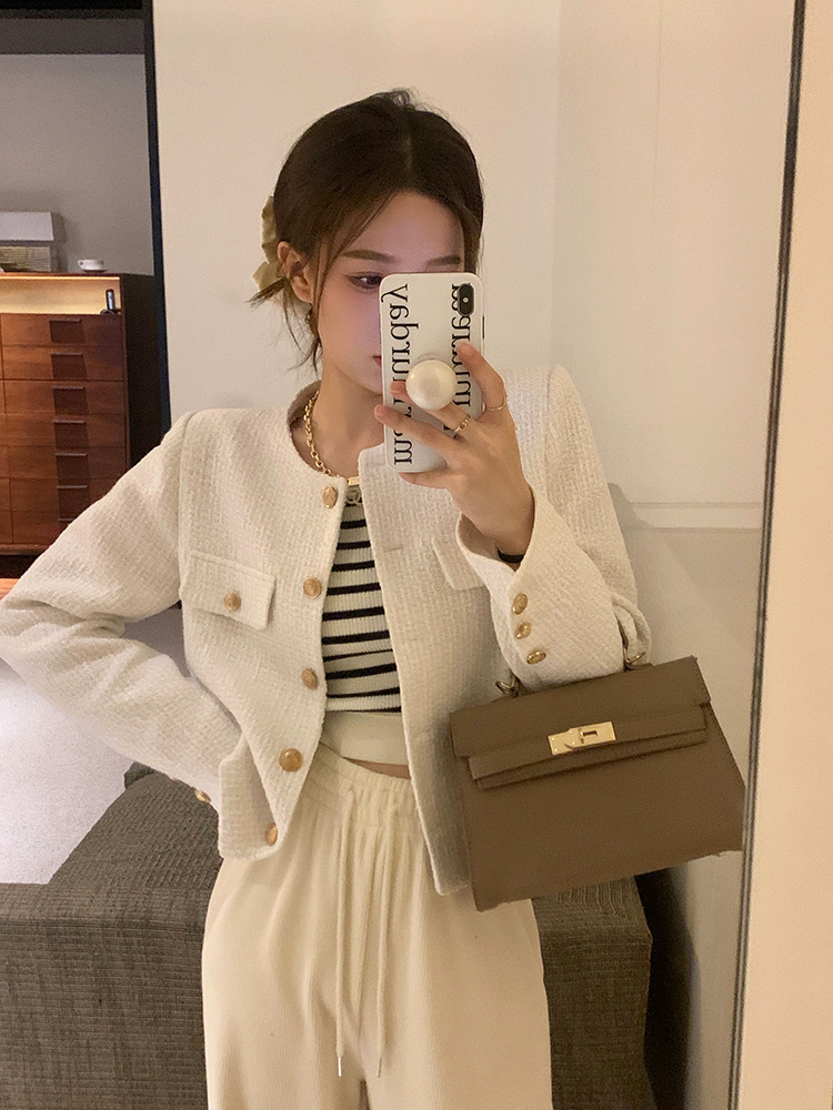 春秋の小香風の柔らかいモチモチとしたニットセーターのカーディガンのコートの女性はゆったりとした怠惰な高級感がある パーカー