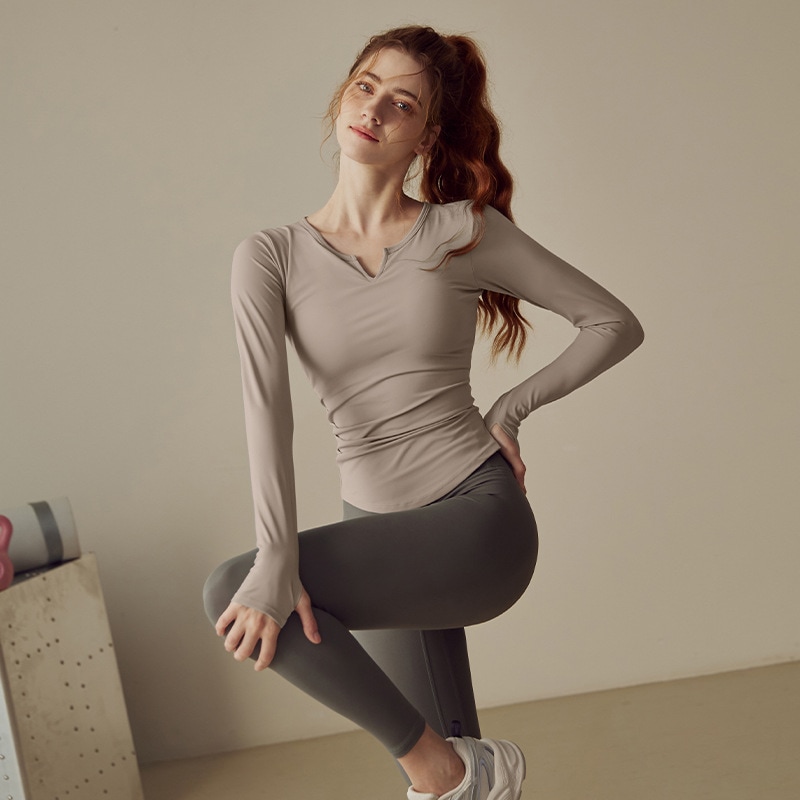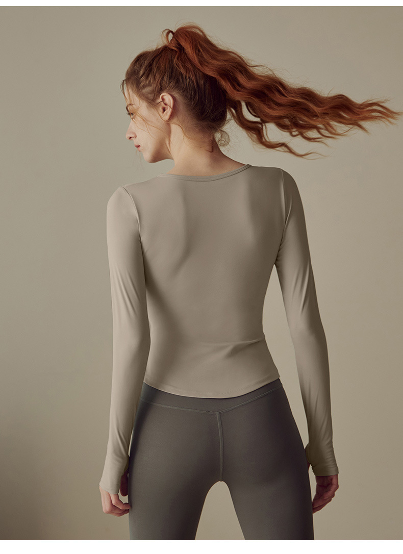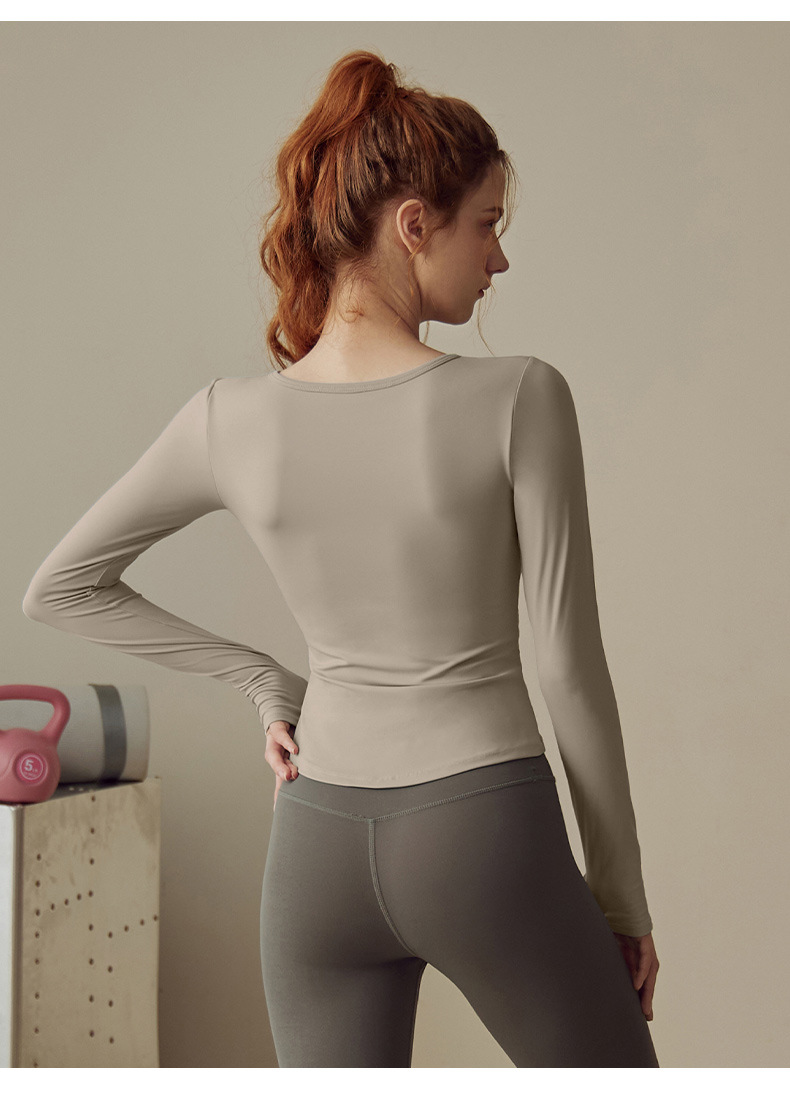 運動ヨガフィット胸パッド付きヨガウェア女性春秋運動長袖Tシャツトレーニングフィットネスランニング トレーナー