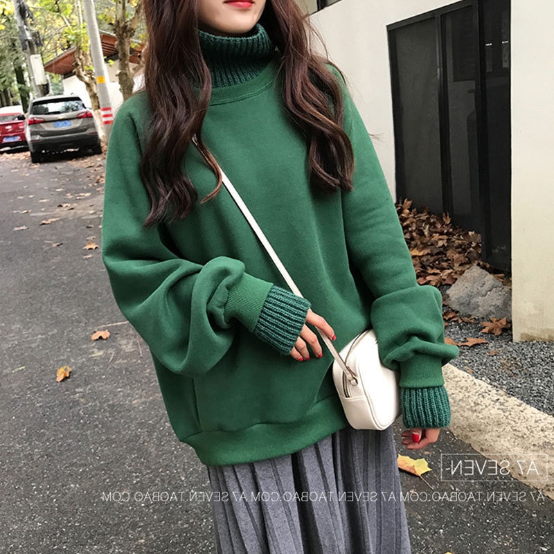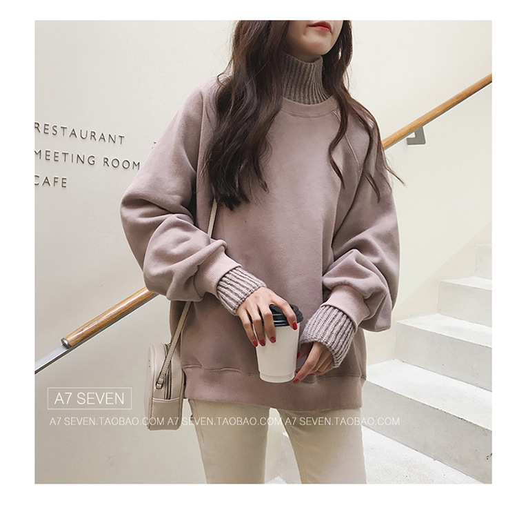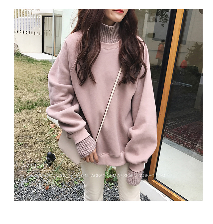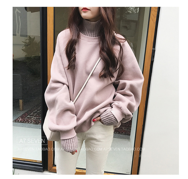 パーカースウェットシャツ女性の秋と冬の新しい韓国語バージョンの学生の緩い怠惰な偽の二枚襟ジャンパーコートの潮 Tシャツ カットソー