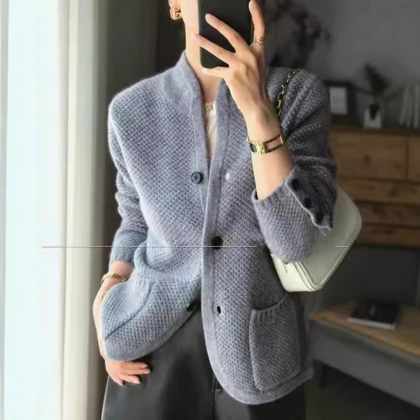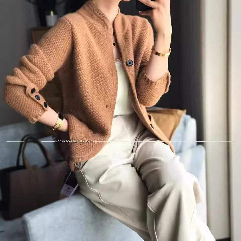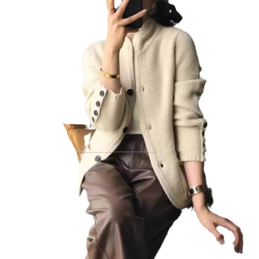 オートクチュール スタンドカラー ジャンパー カーディガン ジャケット レディース 新作 ゆったり 気質 カジュアル ニット カーディガン