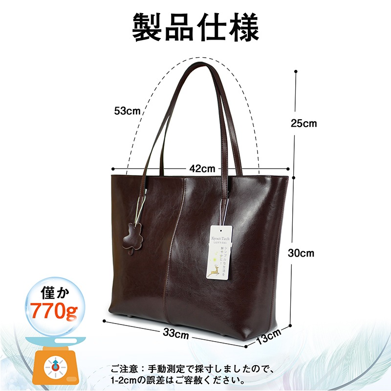 本革 トートバッグ レディース レザートートバッグ a4サイズ 通勤 普段用 ビジネスバッグ ハンドバッグ 仕切り ファスナー付き 肩掛け 軽量 大容量 防水 仕事用 2way 大きめ