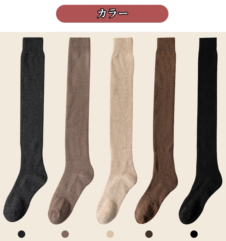 靴下 2足セット韓国ファッション膝上丈ソックスロング靴下 脱げない 保温 厚手ロング靴下 防寒 暖かい着圧 無地 秋冬用 ニット靴下クリスマス