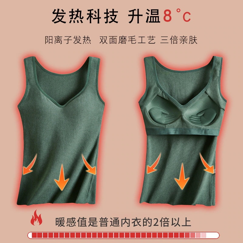 2024 人気 カップ付きインナー 保温チョッキ一体型まとめ下着厚手防寒上着秋冬 キャミソール タンクトップ ヨガ 美背 レディース キャミソール