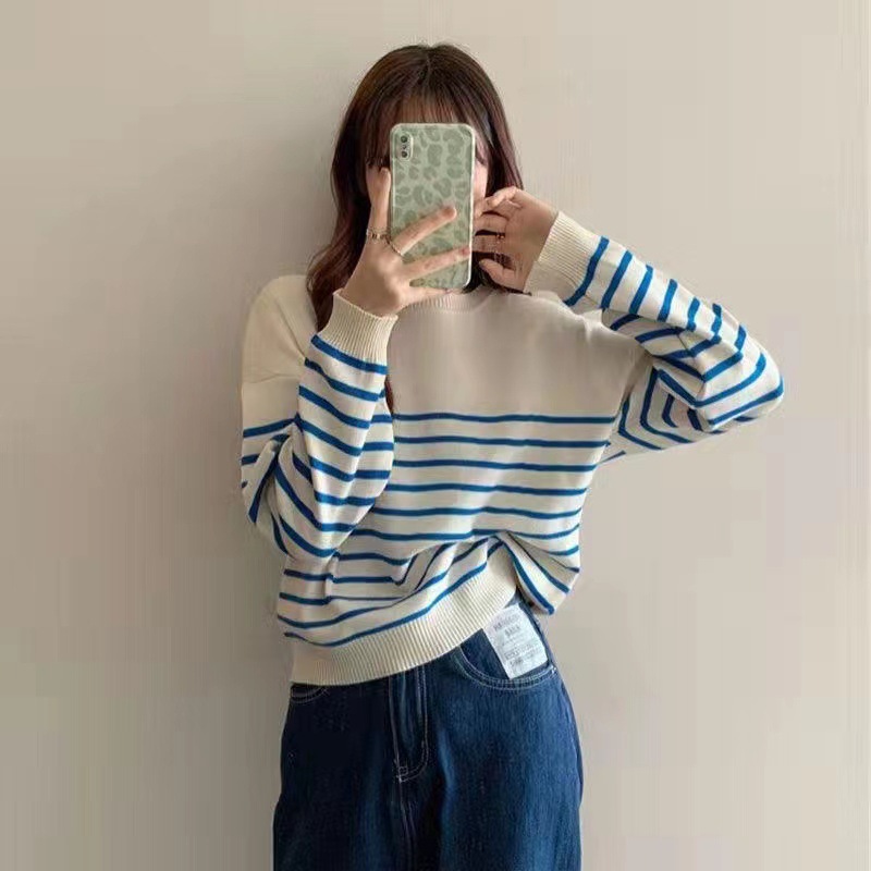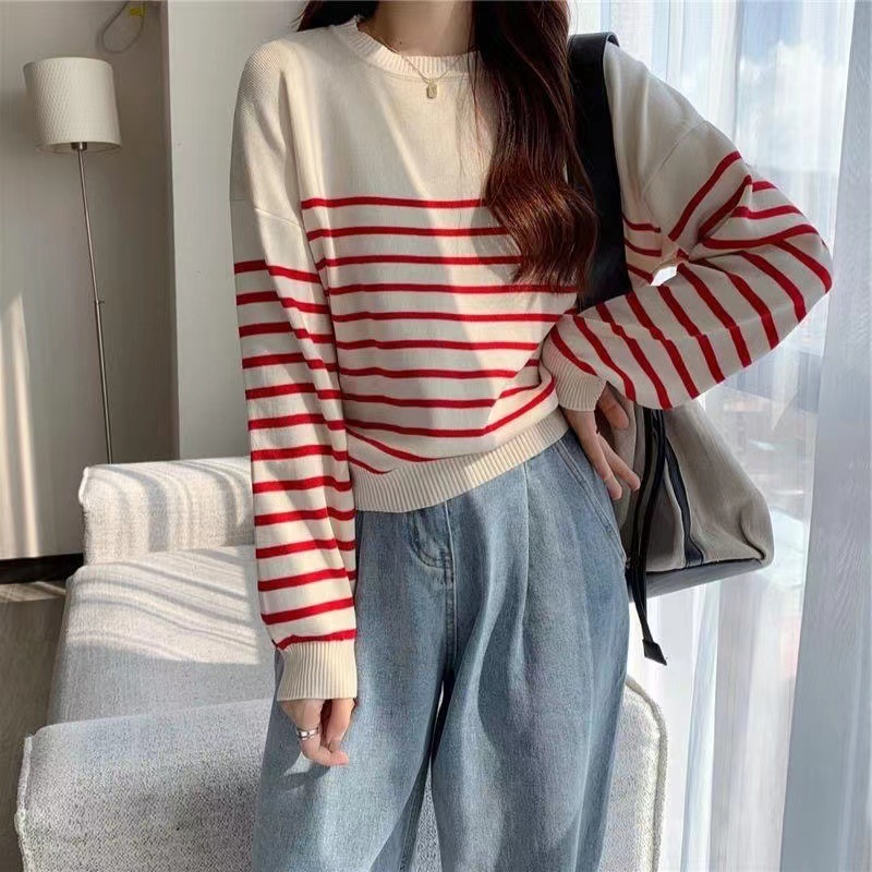 [本日限定] 長袖 ニット 春 秋 ボーダー かわいい トレーナー セーター 部屋着 レディース Tシャツ カットソー