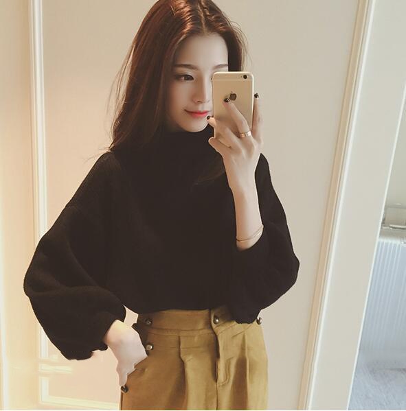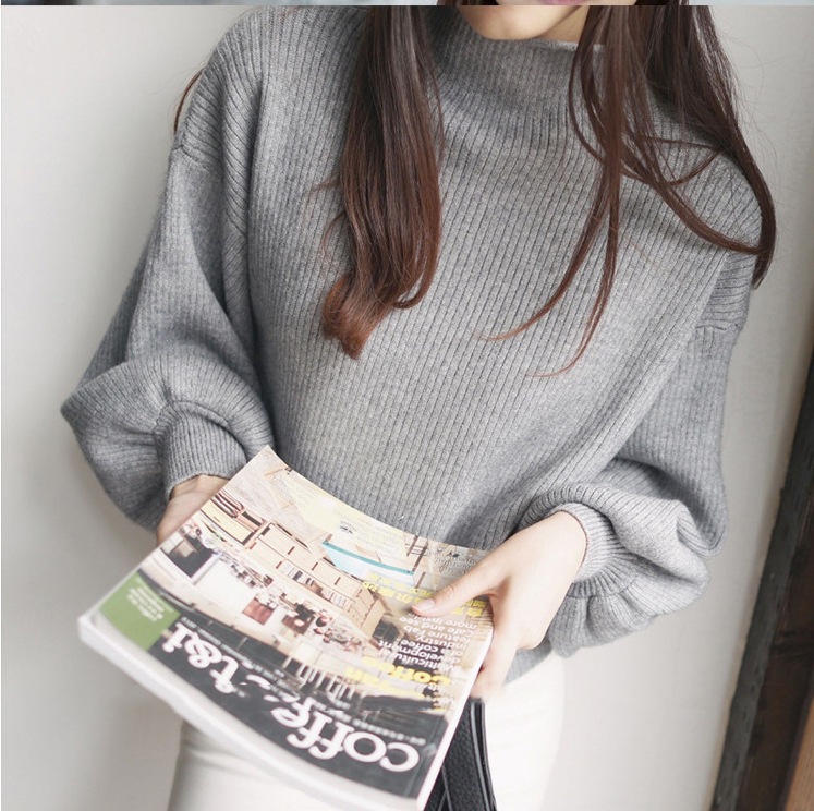 [本日限定] ボリューム袖 ニット ハイネック トップス バルーン袖 長袖 冬 ニット