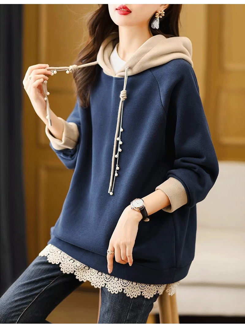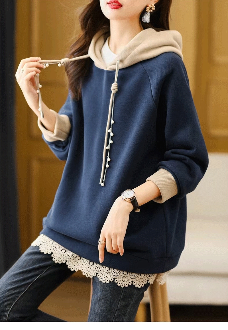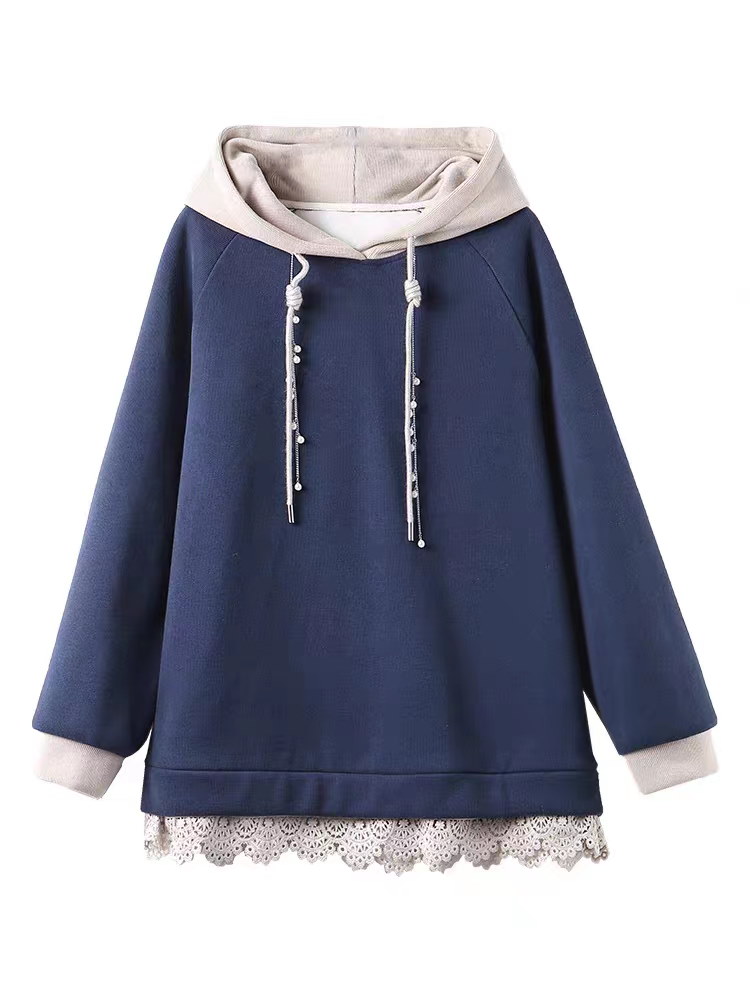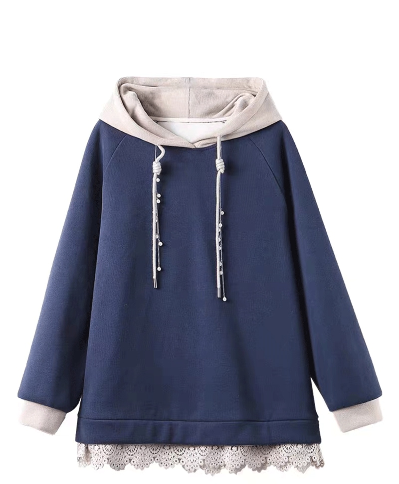 パーカー トレーナー プルオーバー フード付き レース トップス フェイクパール レディース 韓国 パーカー