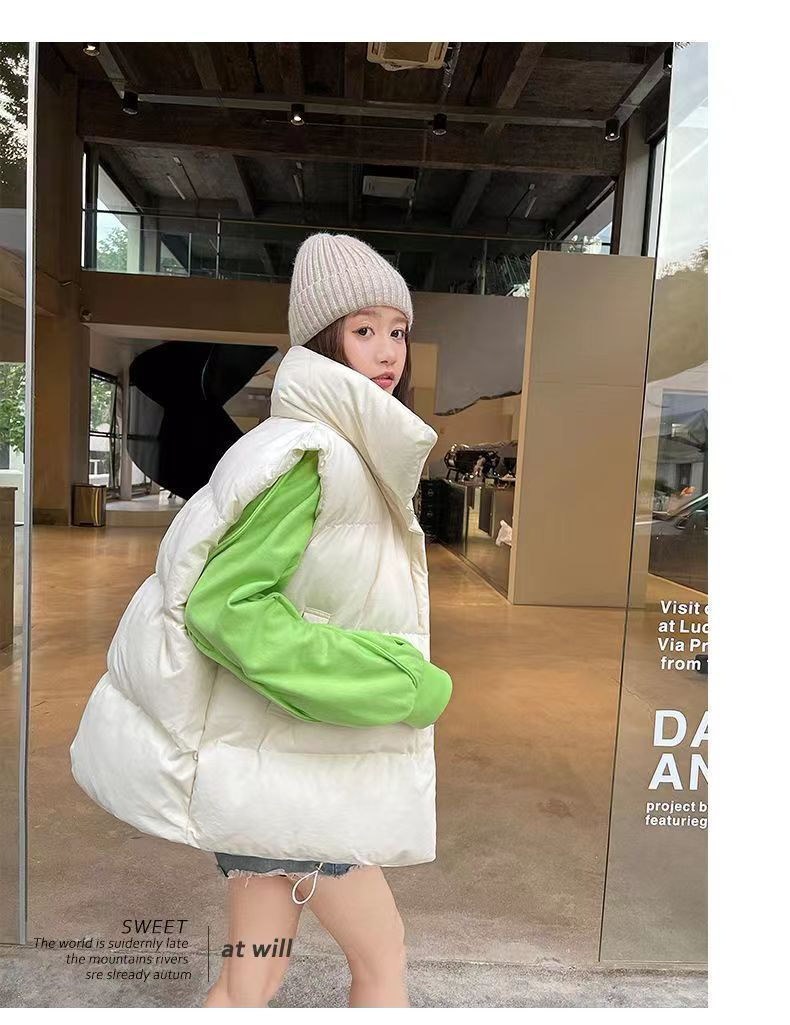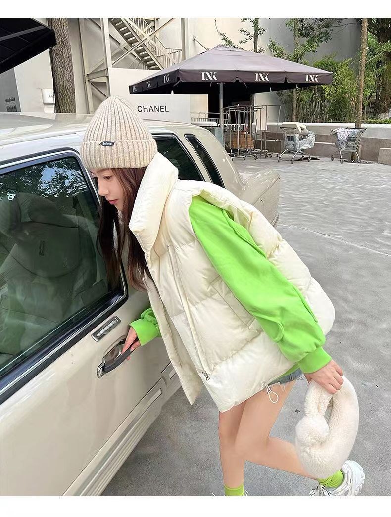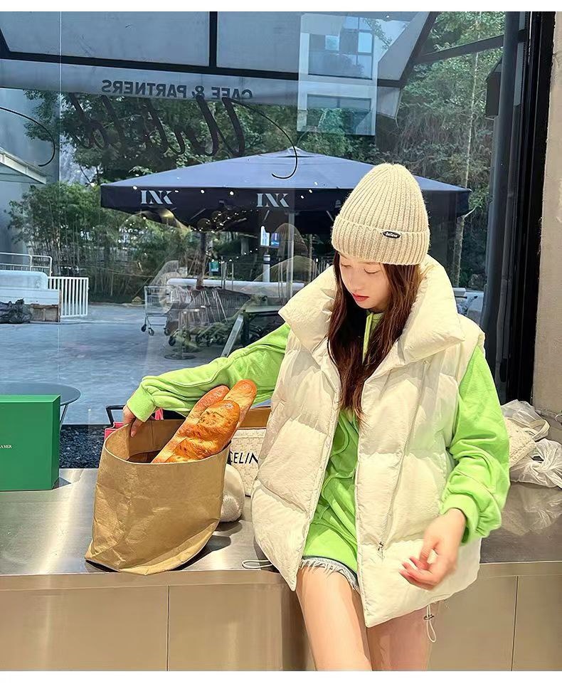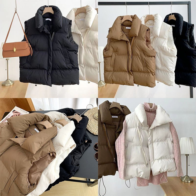 中綿ベスト レディース 韓国 アウター 秋冬 冬 防寒 かわいい おしゃれ ベージュ もこもこ ベスト