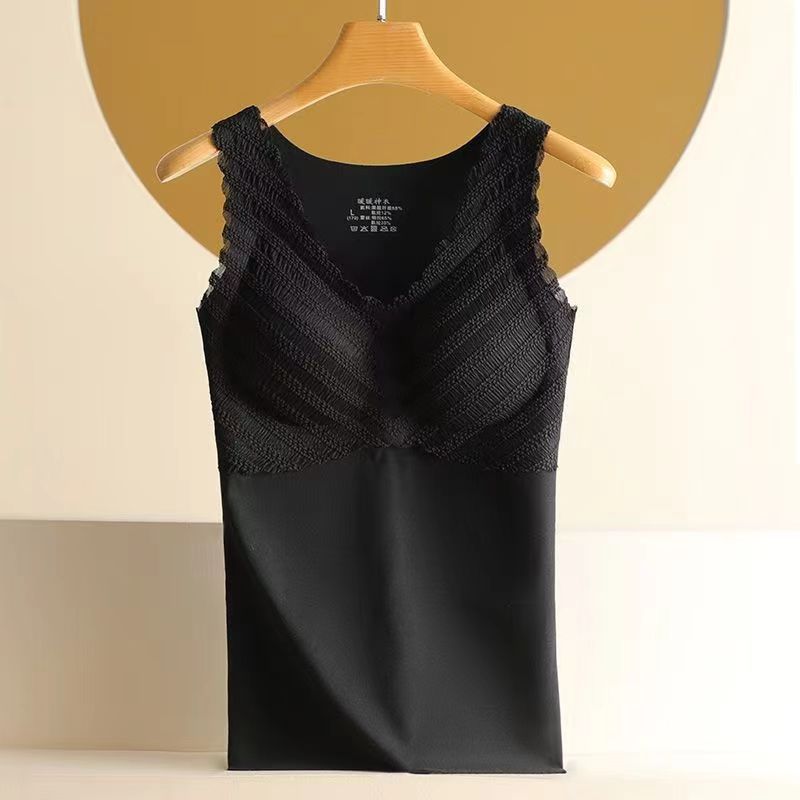 2024 人気 2枚セット カップ付きインナー ノーブラ保温衣レース Vネック レース保温ベスト キャミソール タンクトップ ヨガ 美背 レディース