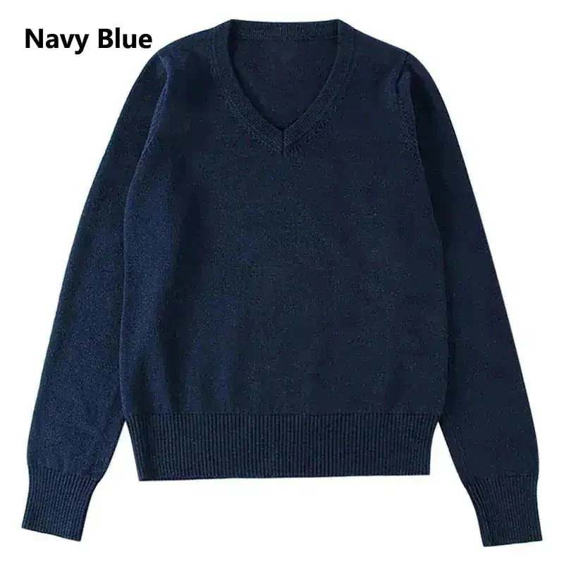 制服セーター10色100%綿コットンレディースメンズVネックトップスアウターチュニッ 韓国ファッシ ニット