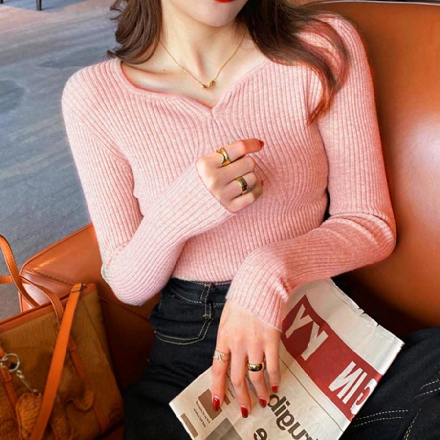 リブニットトップス レディース 大人秋服 百掛け 大きいサイズ 長袖 タートルネック ベーシックニット ニット