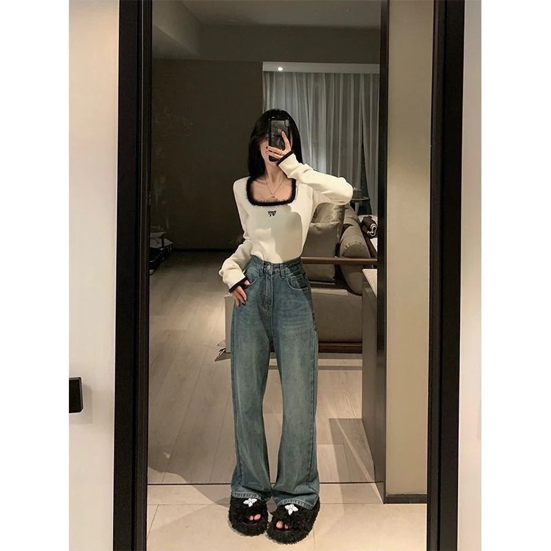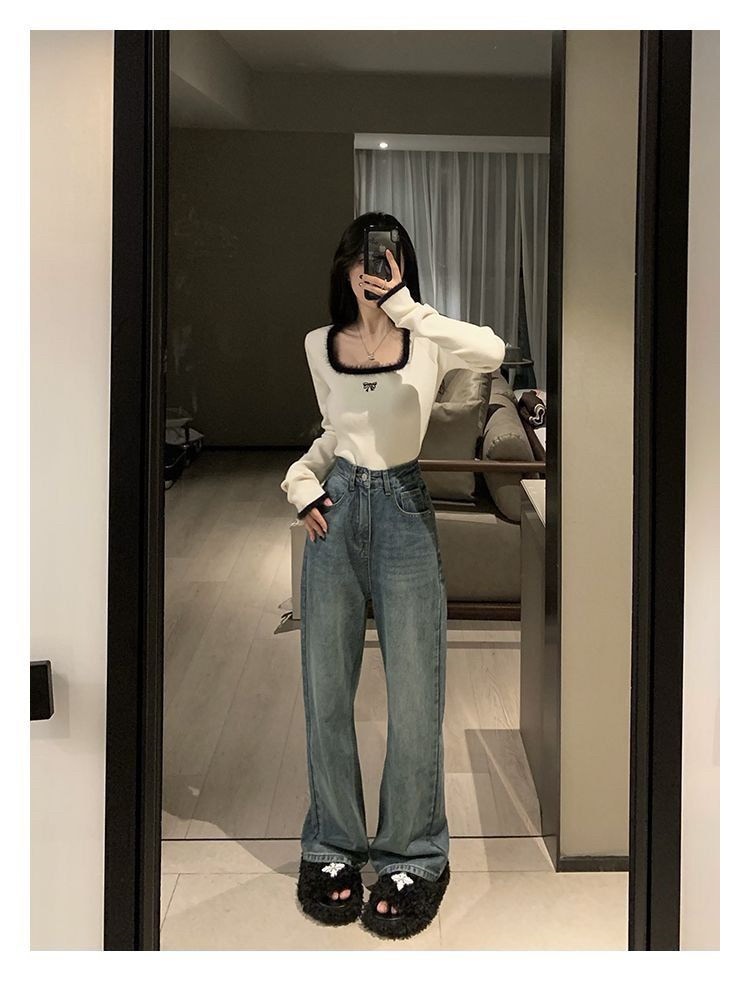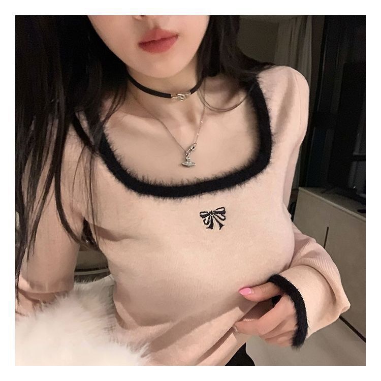 メガ割 長袖カットソー レディース 甘い デザイン スクエアネック長袖Tシャツ スリミング ショート丈 着痩せ シャツ保温インナートップス Tシャツ カットソー