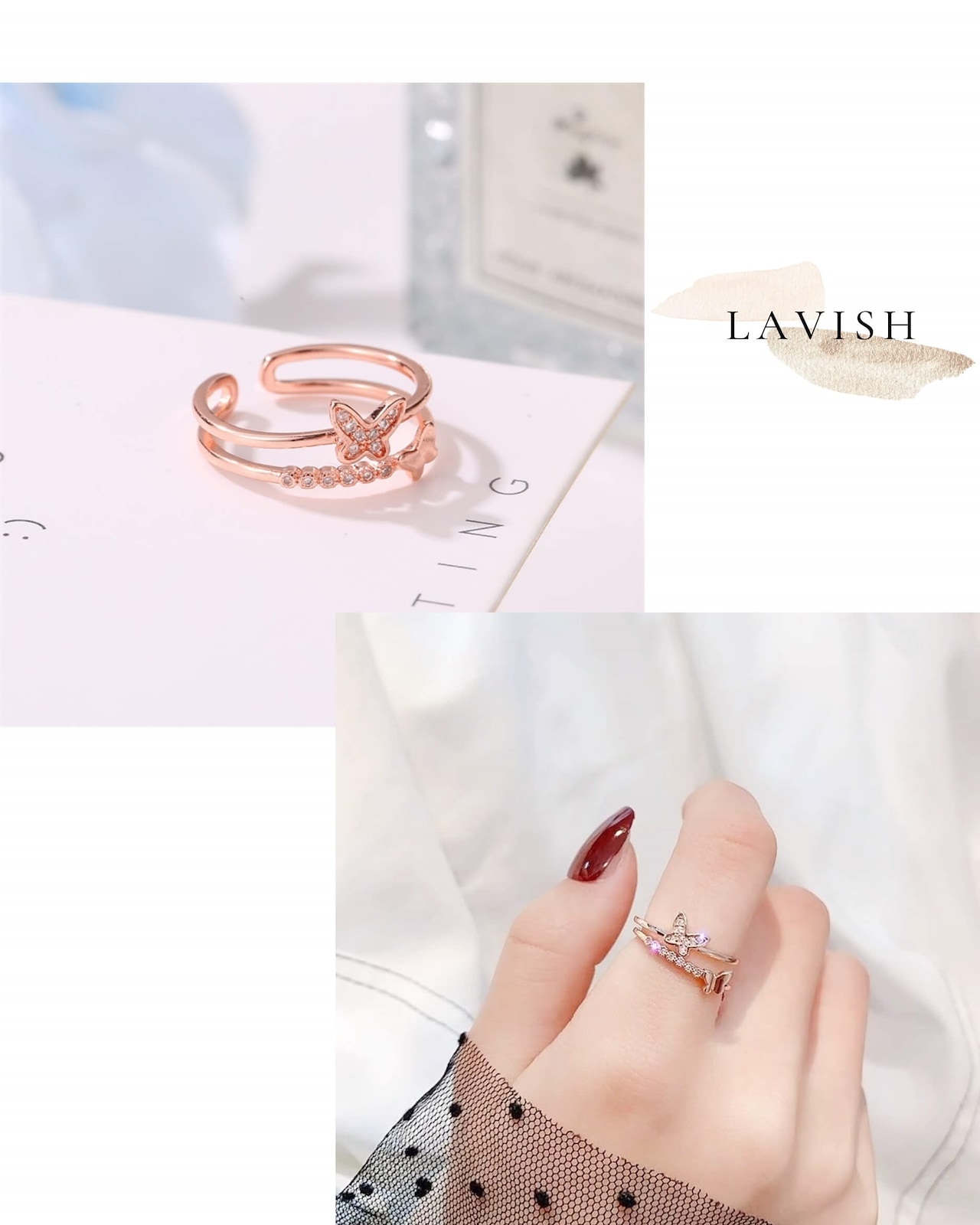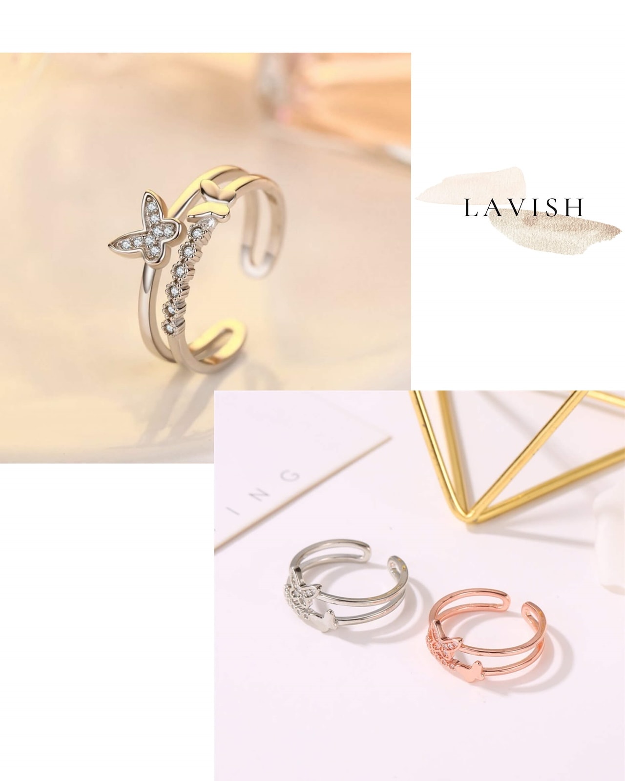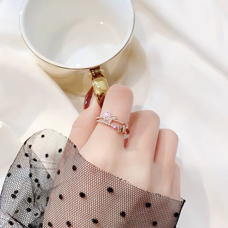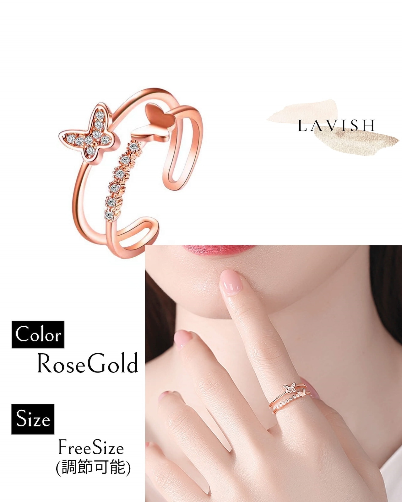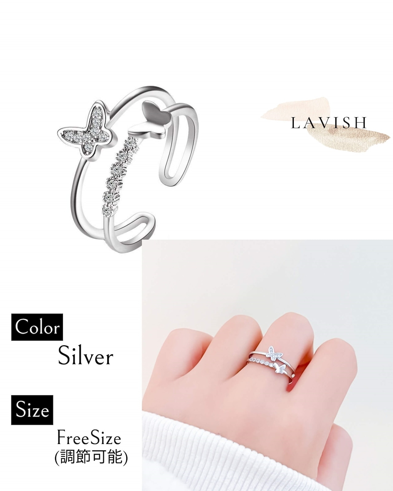 LAVISH バタフライフレームリング フリーサイズリング調節可能リング シルバーリング ギフトレディース メンズ 指輪アクセサリー メガ割 韓国ファッション プレゼント
