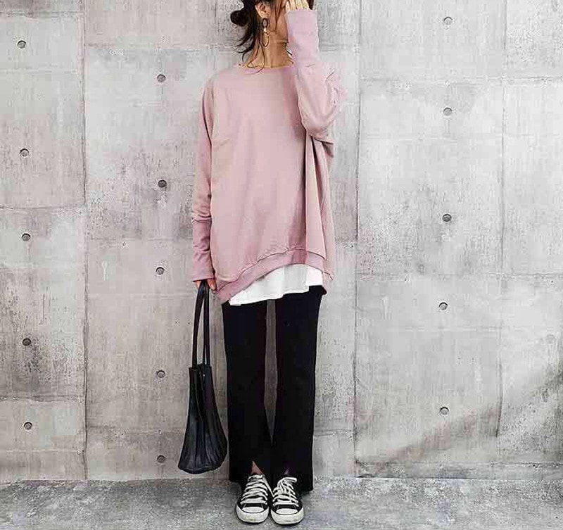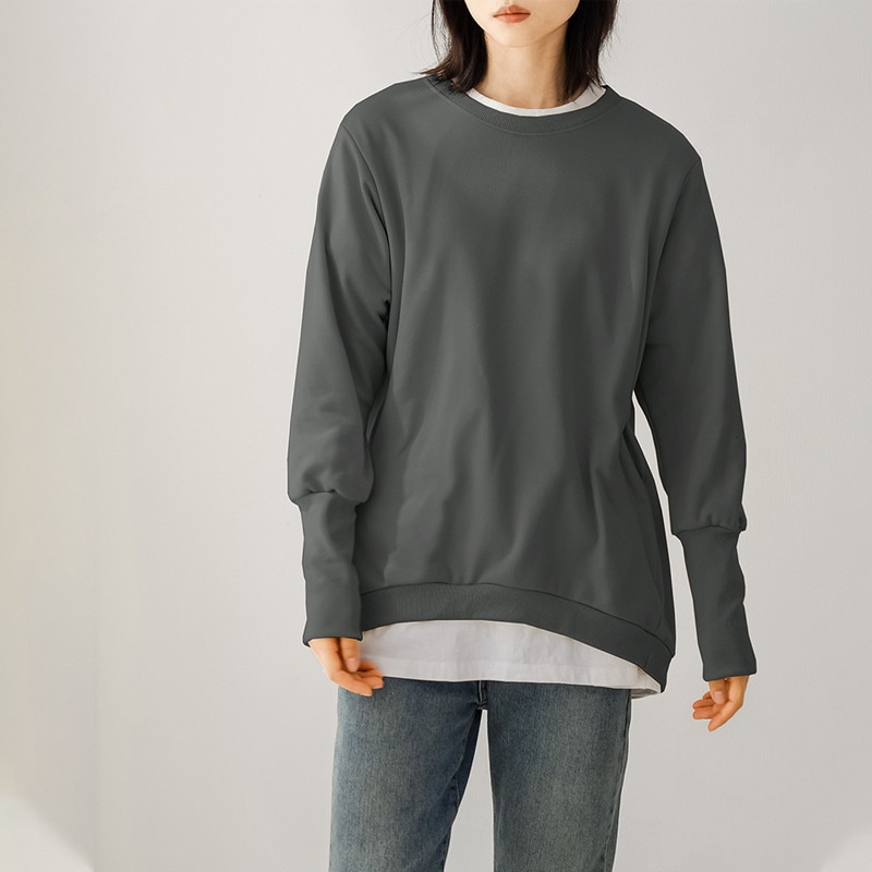 ポケット付き レディーストレーナー スウェット リブ長 トップス 長袖 無地 Tシャツ カットソー