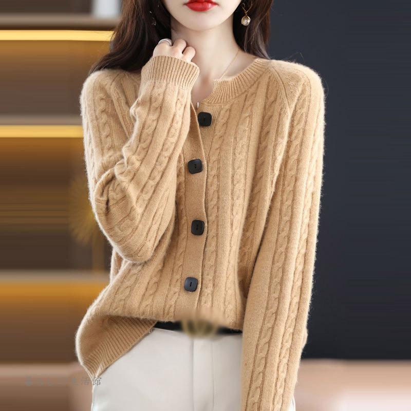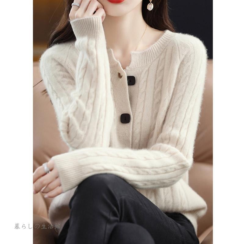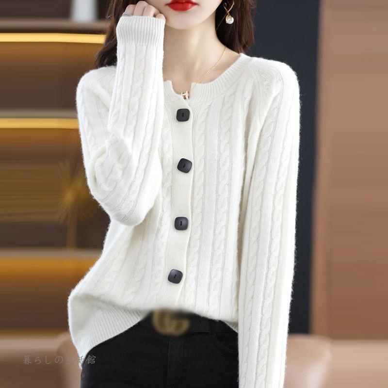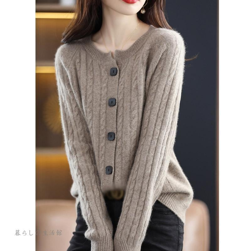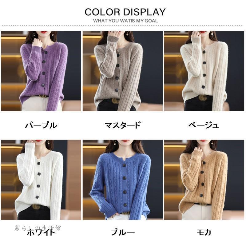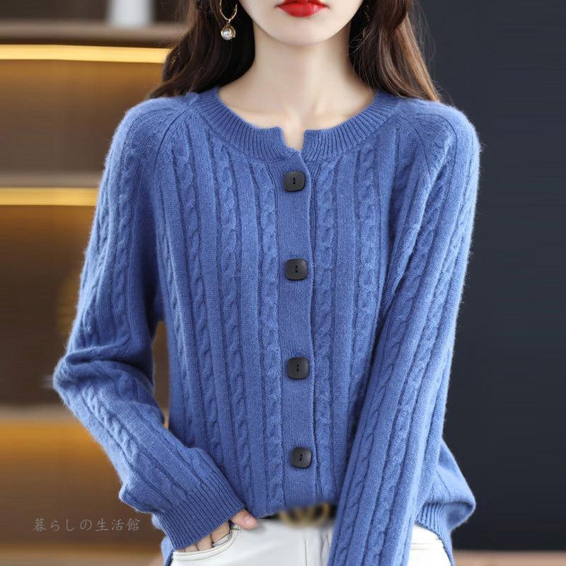 カーディガン ニットセーター レディース 春秋 Vネック 重ね着 長袖 ニット プルオーバー トップス ウール100% ニット