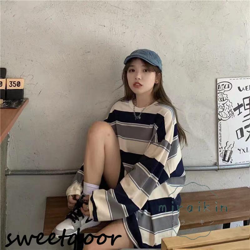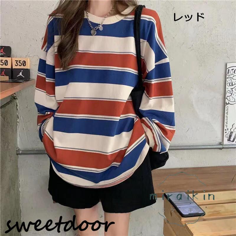 カットソー レディース トップス Tシャツ 春 ロンT ボーダー 長袖 tシャツ ロング ゆったり 大きいサイズ リラックス 体型カバー きれいめ ワイドボーダー