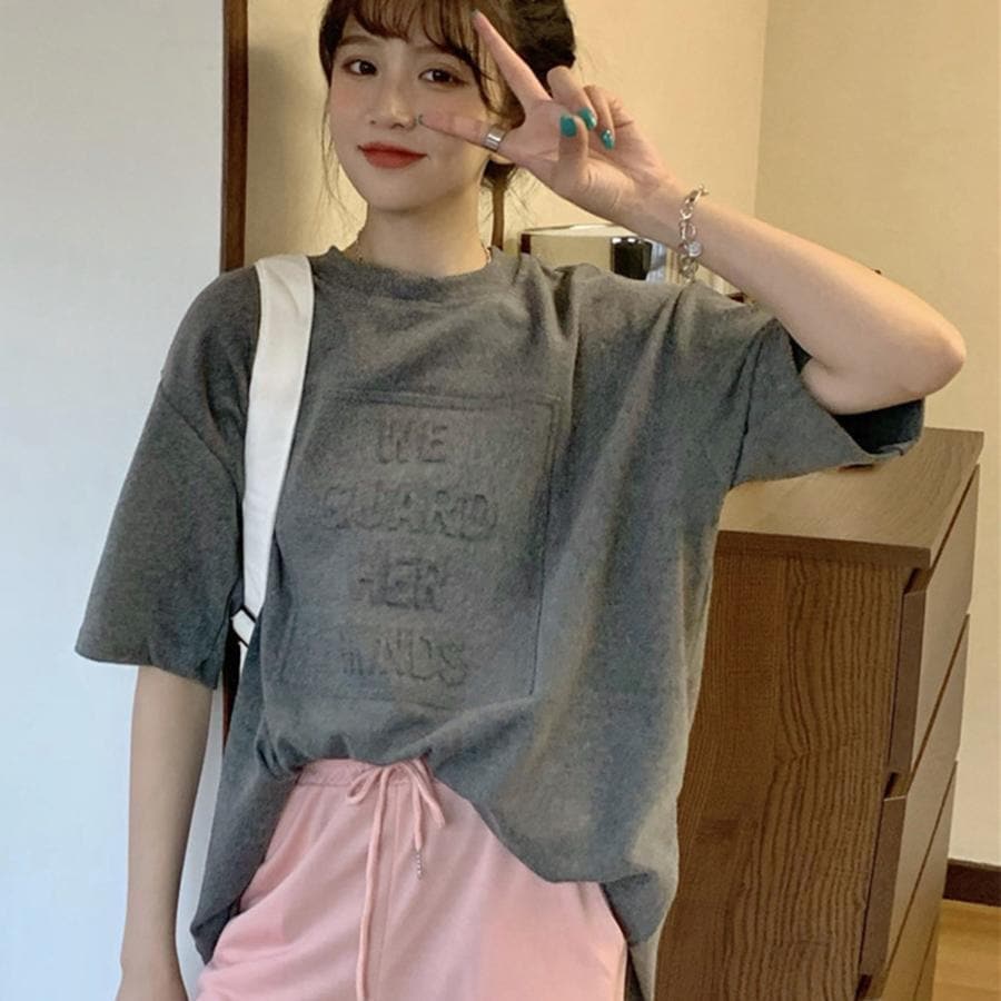 立体ロゴtシャツ 韓国チュニックロンT Tシャツ カットソー