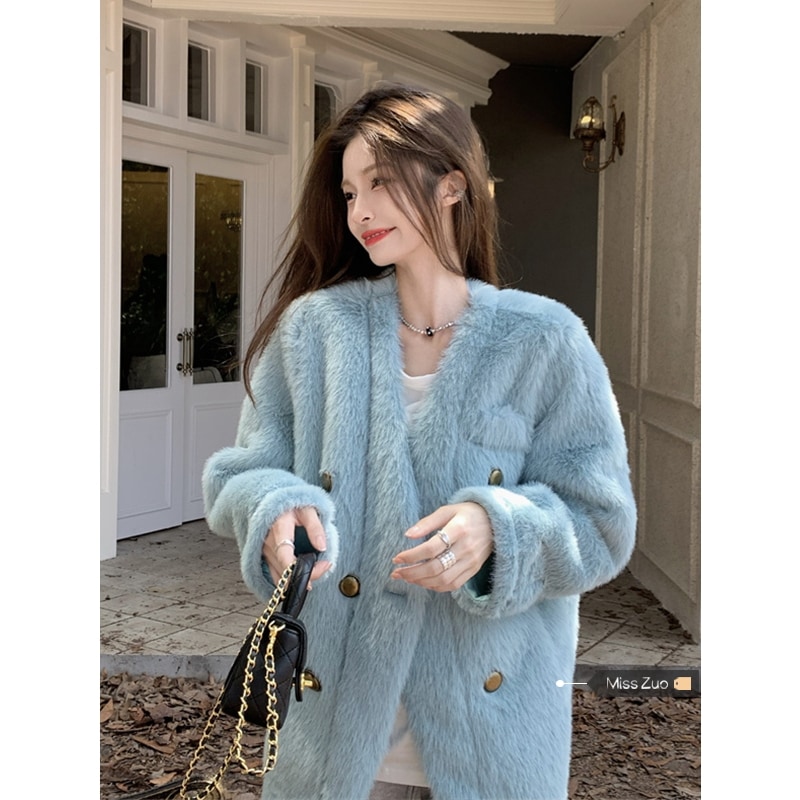冬アウター 冬 やさしい だるい ダウンを厚くする ミンクの毛皮 青 コート着 レディー 秋冬 韓国系 高級 ファッション その他 アウター
