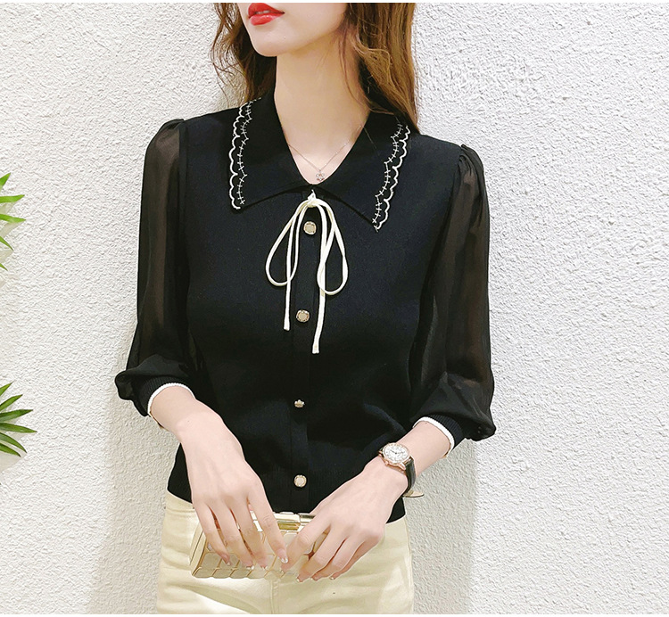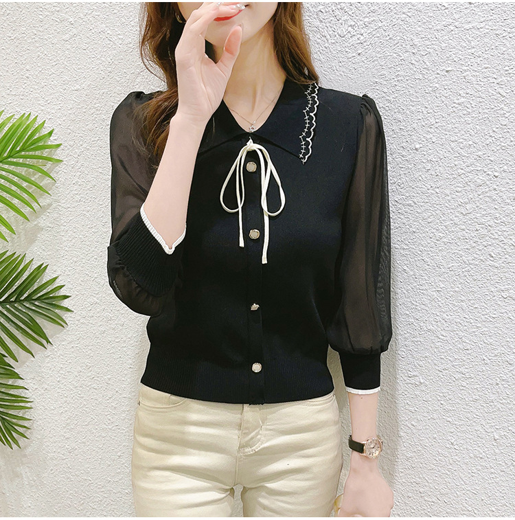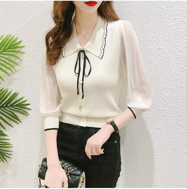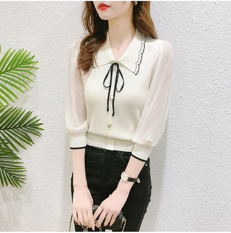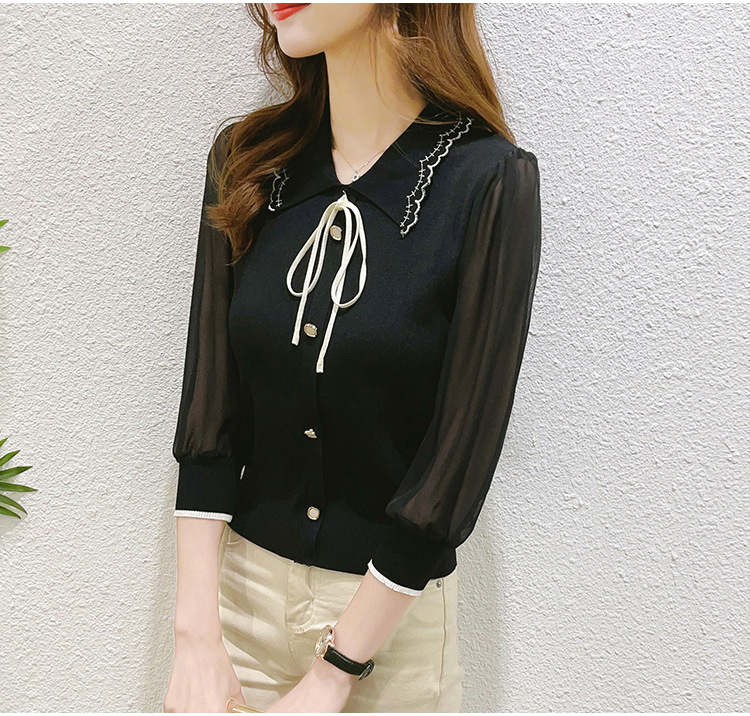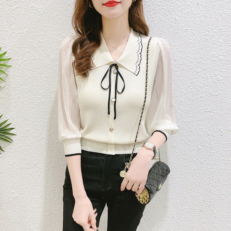 シアースリーブ ドッキングシャツ ボウタイシャツブラウス