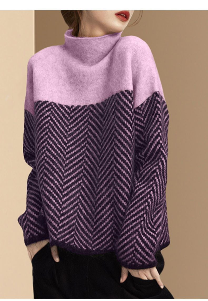人気なリブニット カシミヤタッチニットセーター トップス ニットインナー ベーシックニットタートルネックゆったりリブニット ニット