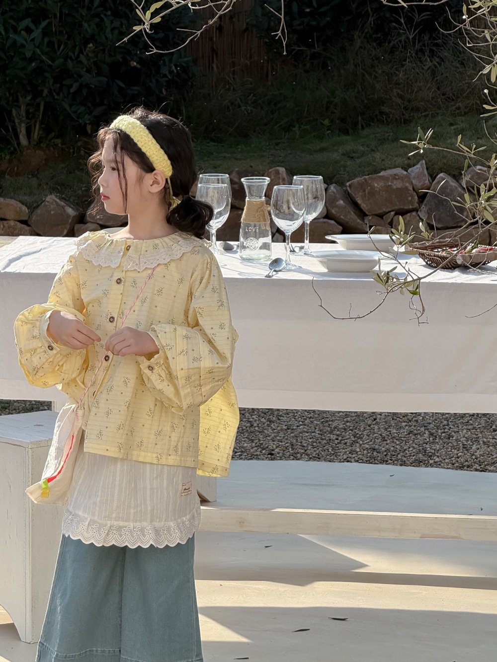 子供シャツ2025春モデル女性赤ちゃん韓国版レース襟泡袖シャツ子供カジュアルゆったり花柄トップス Tシャツ ブラウス