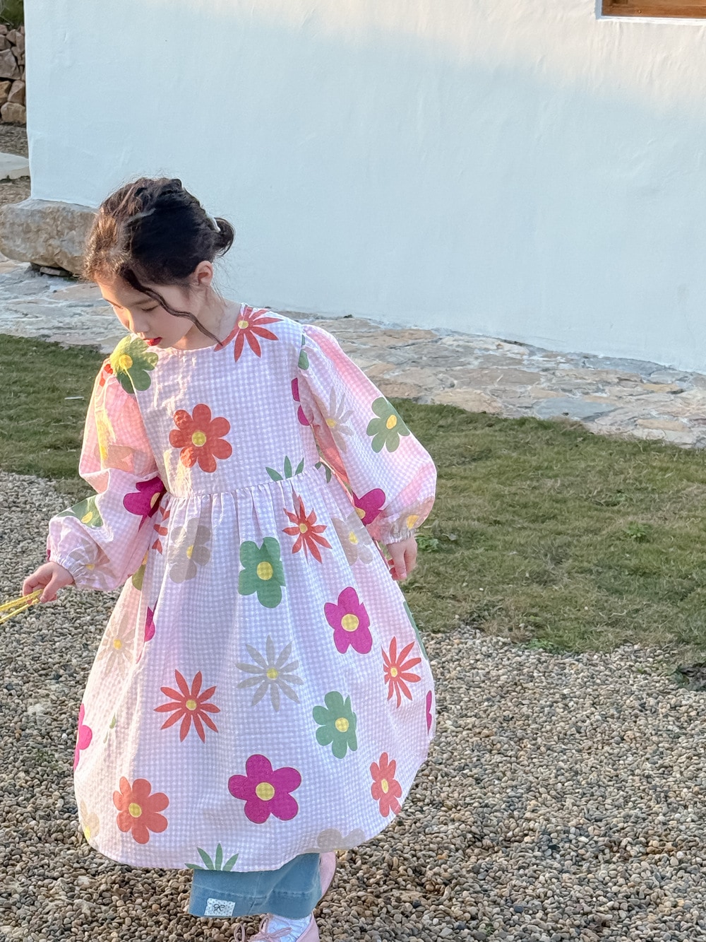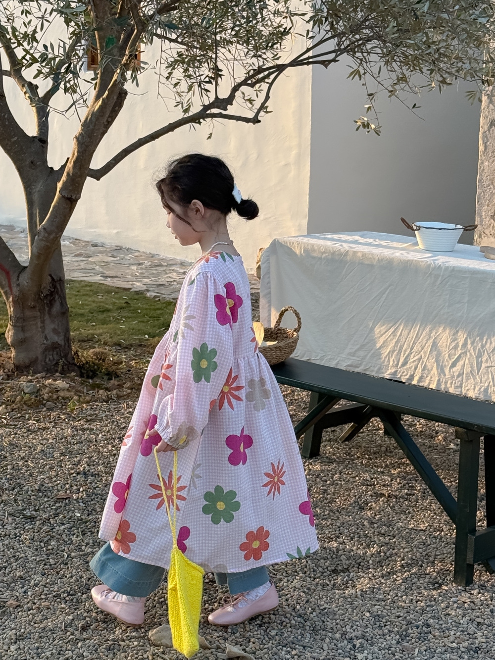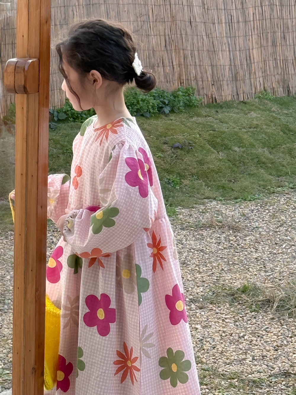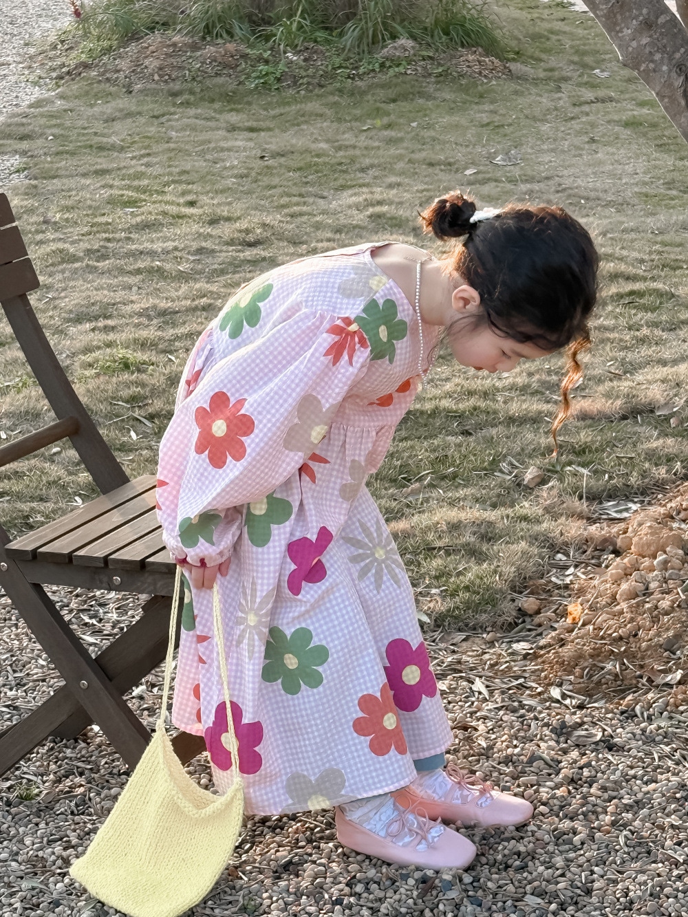 キッズスカート2025春モデル女性ベビー韓国版満版カラーフラワーワンピース子供カジュアルゆったりプリンセスロングスカート 子供服 女の子 ワンピース