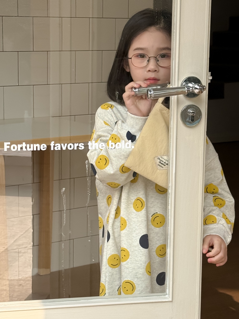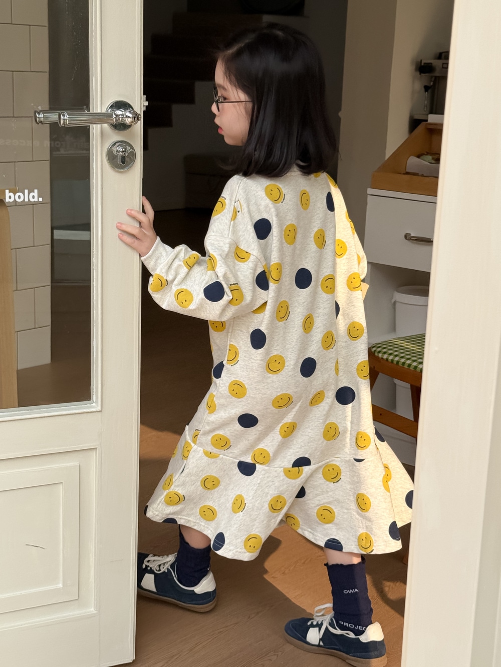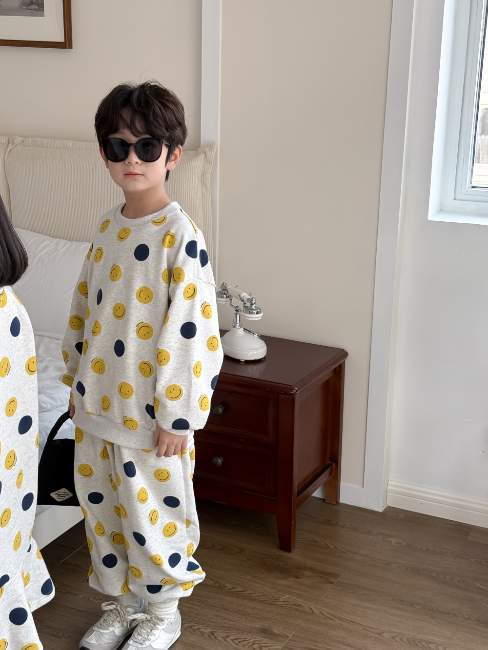 キッズスーツ2025春モデル男の子と女の子の韓国版満印笑顔のロンTセット子供丸首カジュアルロンTスカート 子供服 男の子 セットアップ 子供服 女の子 ワンピース