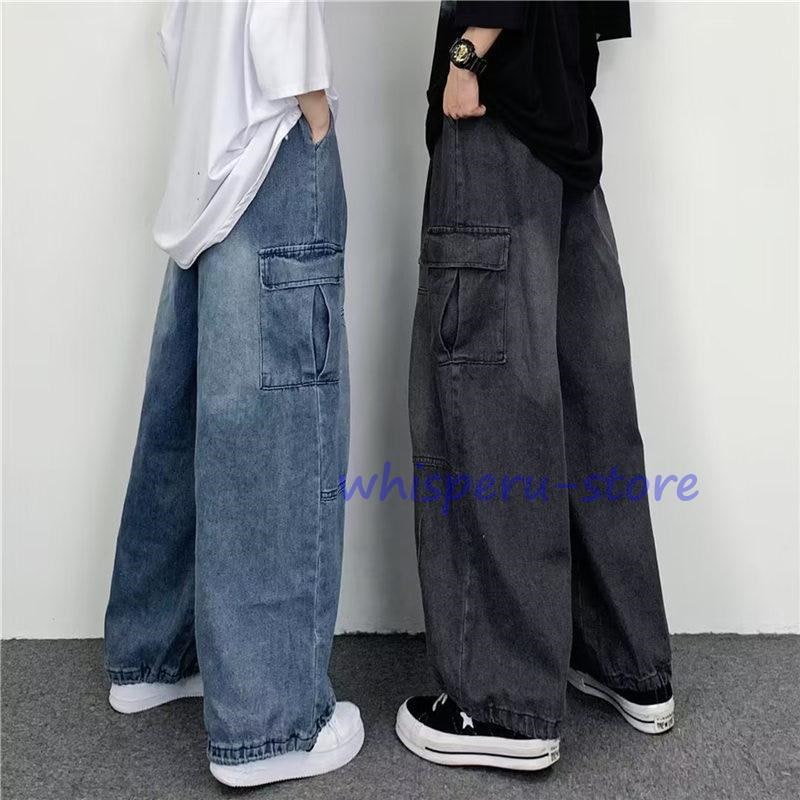 デニムパンツ メンズ ワイドパンツ ジュニア カーゴパンツ カコイイ スウェット デニムジーンズ ゆったり ジーパン 大きいサイズ デニム ジーンズ