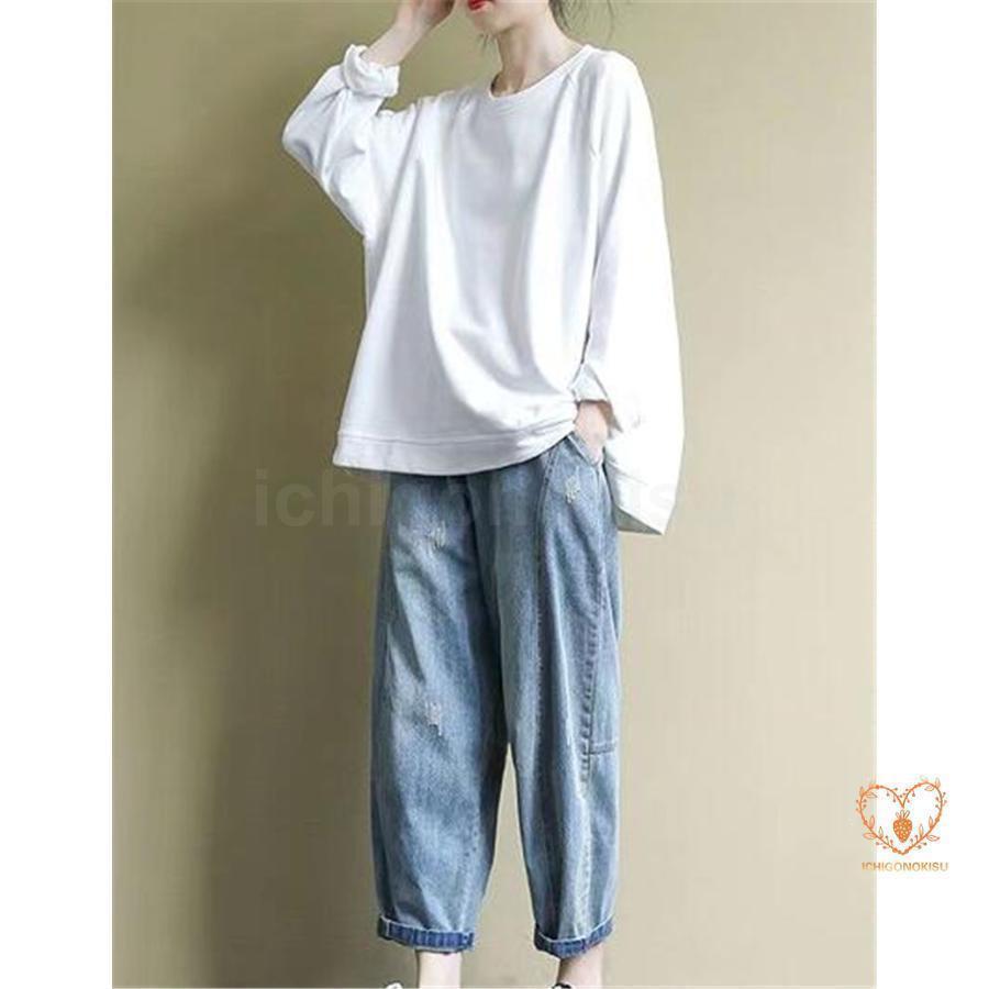 新入庫 トレーナー レディース トップス スウェット クルーネック 無地 アウター ゆったり 体型カバー 上着 プルオーバー 秋冬 カジュアル 通勤 シンプル