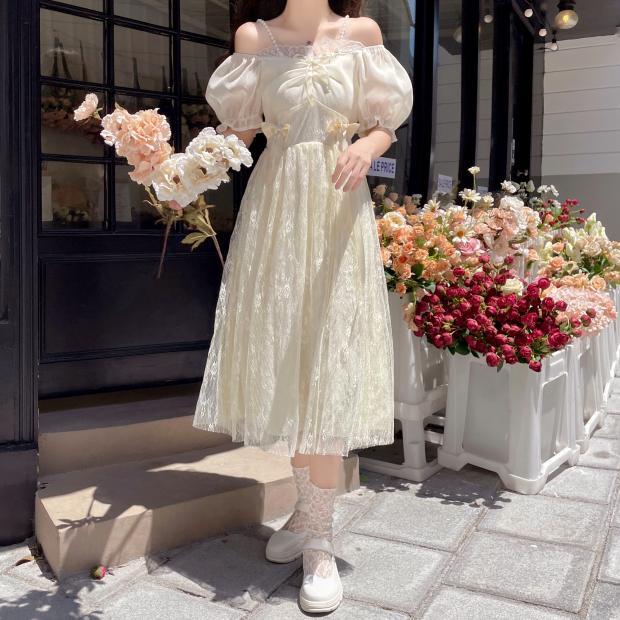2024 新作 可愛い 着痩せ バブル袖 レース ワンピース ロリータ プリンセススカートサンタコスプレ コスプレ 蝶結び コスチューム
