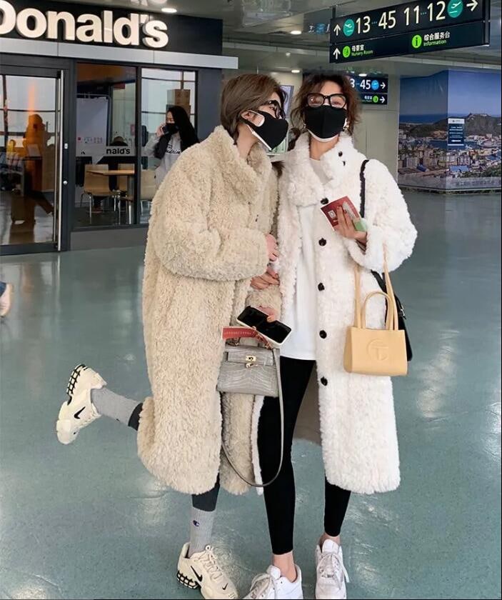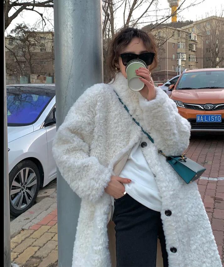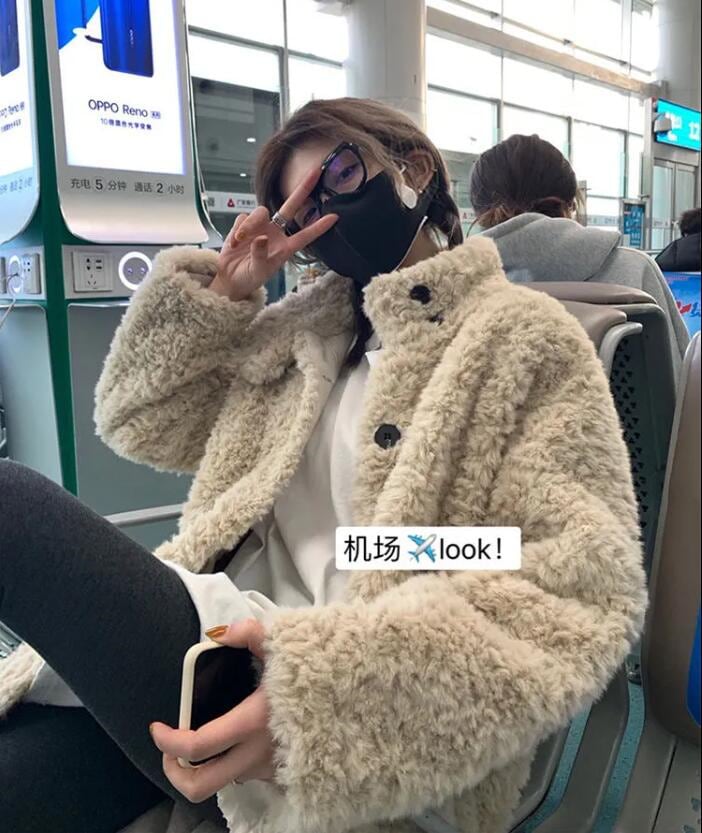 綿を入れて厚くする 子羊の毛皮の草コート女ウサギの毛を模した韓国版ミディアム丈のゆったりとしたスタンドカラーの毛コート女秋冬 ファー 毛皮アウター