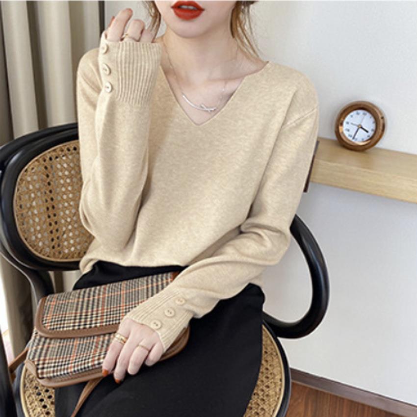 2025新作韓国ファッション春秋冬ニットTシャツ 7カラー春秋ニット レディース 無地 ニット プルオーバー リブニット トップス 韓国ファッションサマーニットTシャツ